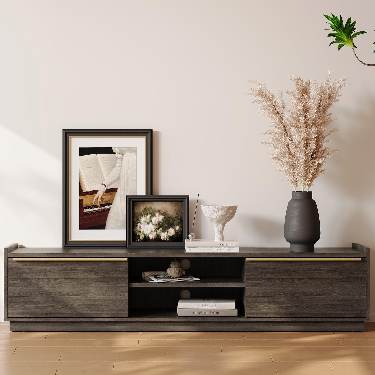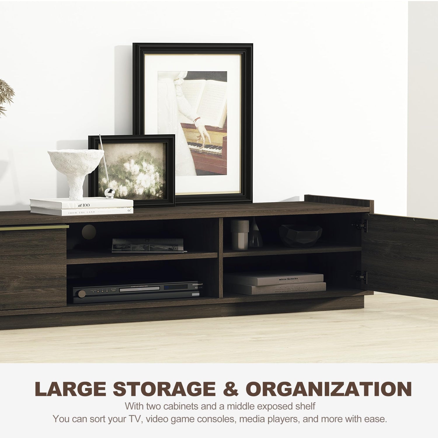 - [Entertainment Center with Large Storage] - With two closable side cabinets and a middle exposed shelf, each with 2-tiers of space, there is a total of 6 large compartments in this TV stand. You can sort your TV, video game consoles, media players, and more with ease. Cable management cutouts of this tv entertainment center are provided to help keep chords and wires neat and untangled.