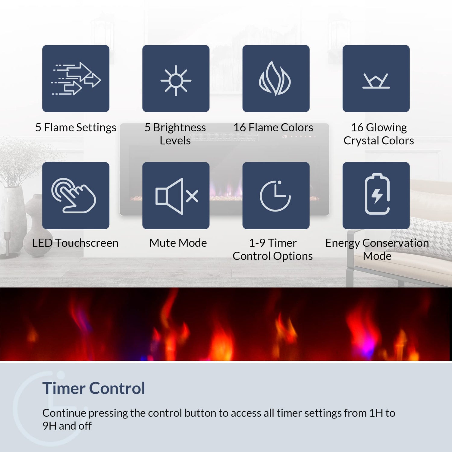 - [Customizable LED Fireplace & Ambiance] The integrated electric fireplace features 16 adjustable color options, providing a captivating atmosphere tailored to your mood, decor, or preference. With 1400 Watts, it delivers 5000 BTUs per hour and heats up to 400 sq. ft, creating a cozy environment for relaxation.
