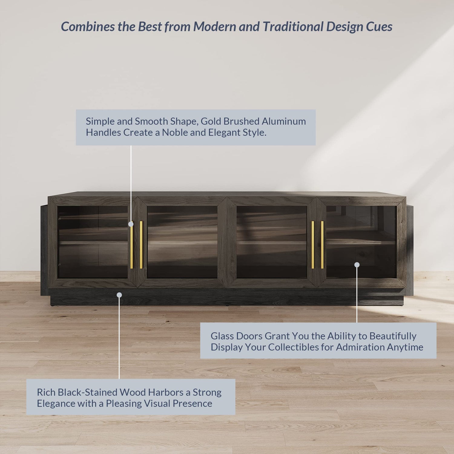 - [GLASS DISPLAY CABINET] Framed with glass doors, this media console table also doubles as an elegant display unit, allowing you to show off your treasured collectibles and nostalgic memorabilia that's sure to impress your guests.