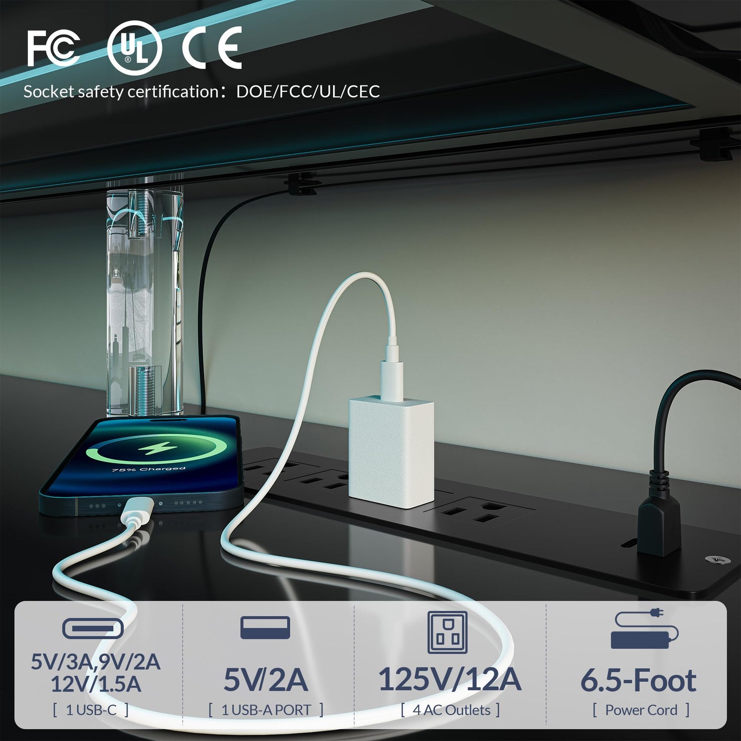 - [Power Strip] It includes a built-in power strip with 4 AC outlets, 1 USB, and 1 Type C charging port, allowing multiple electronic devices to be plugged in at the same time. You'll be able to use this media console table in conjunction with all of your electronic devices without charging hassles.