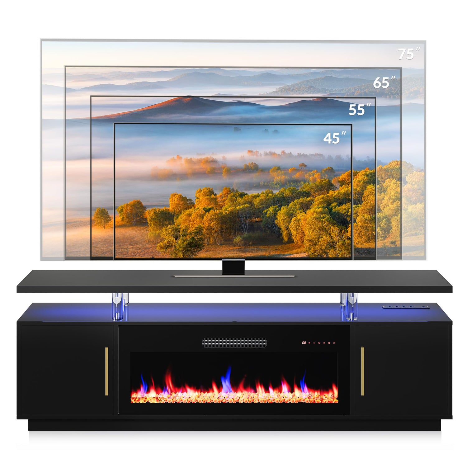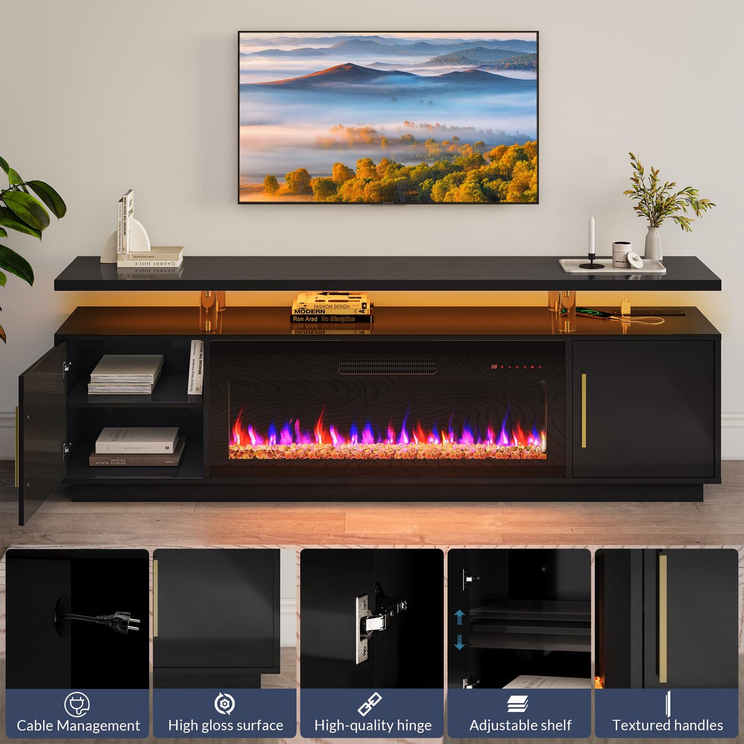 - [Multipurpose Design] This piece serves as a 79" TV stand, a media console table, and an electric fireplace. It reduces the number of furniture needed and saves space. It's made from high-quality manufactured wood with a premium high-gloss finish. It's available in black and white colors.
