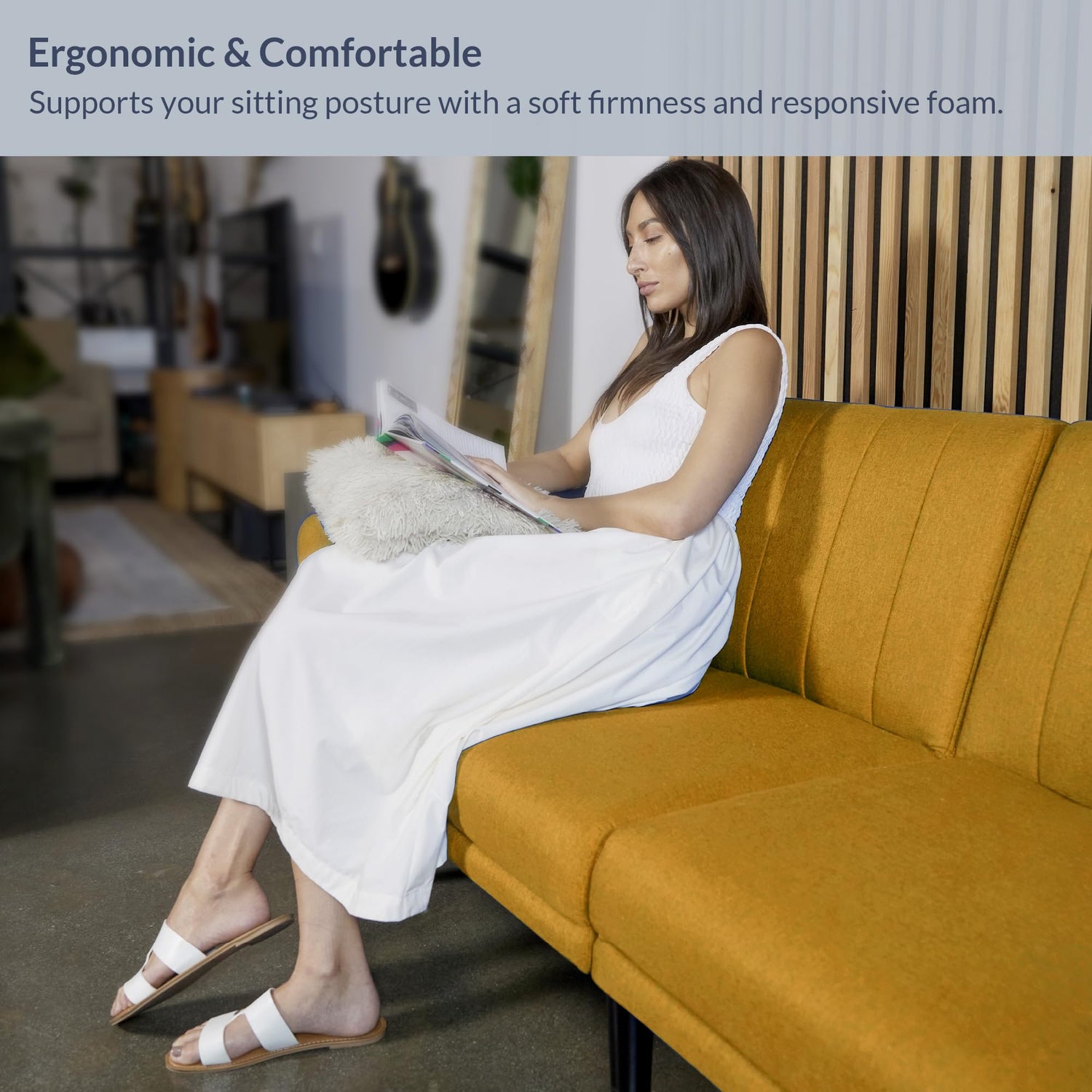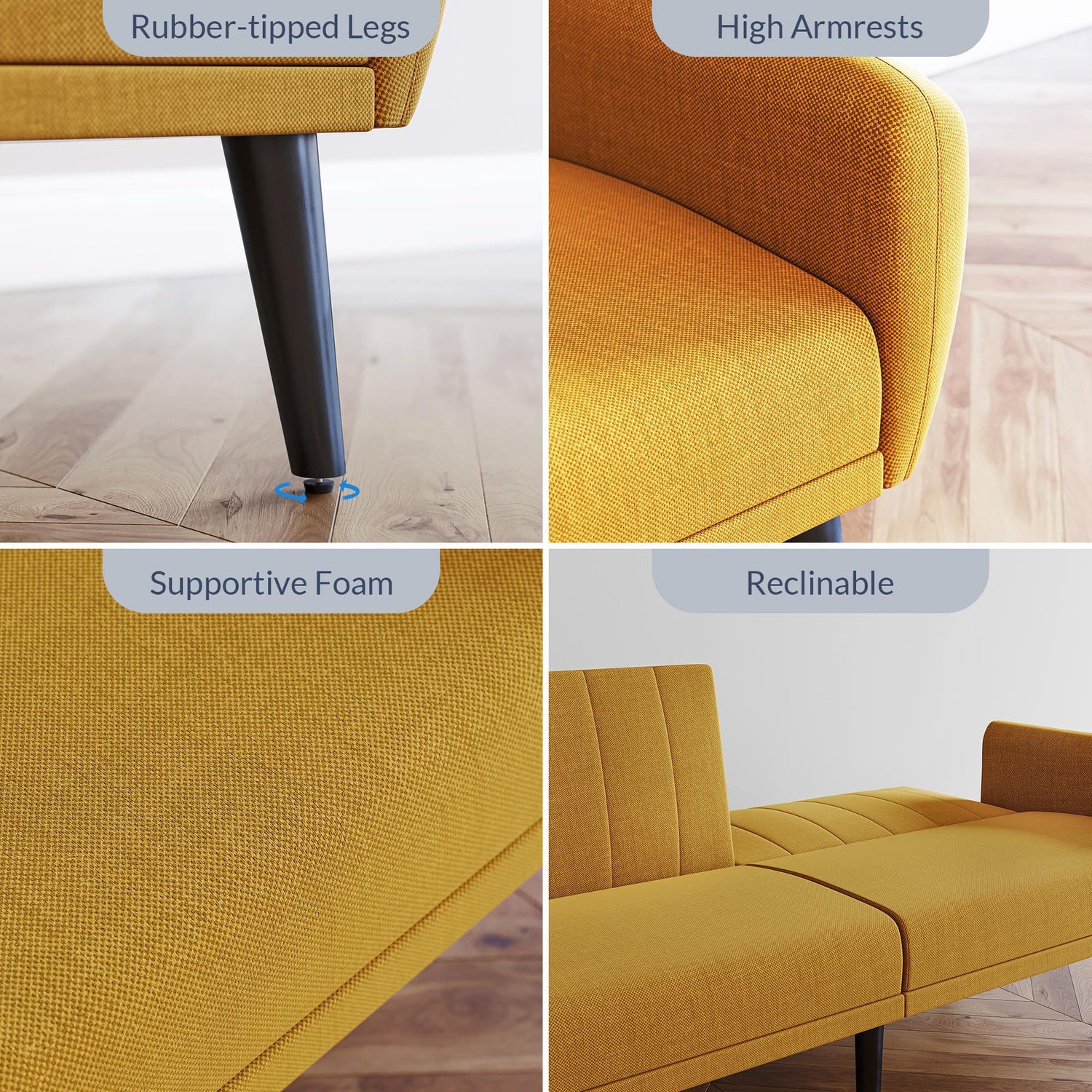 BELLEZE Adjustable Folding Sofa Bed, Upholstered Modern Convertible Futon, Sleeper Sofa for Living Room, Guest Room, Garage - Melrose (Yellow)