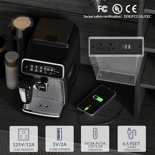- [Coffee Bar Cabinet with Power Outlet] - This wine cabinet with storage features a spacious tabletop with a power outlet (2AC+ 1USB+ 1TYP-C), offering convenience for integrating small appliances like electric cocktail mixers, coffee machines, toasters, and microwave ovens, making this wine bar cabinet both functional and aesthetic in your home.
