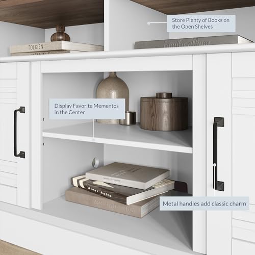 - [MODERN FARMHOUSE DESIGN] A farmhouse-inspired TV stand with a modern design. Sports an elegant white finish and blends well with contemporary and industrial decor styles.