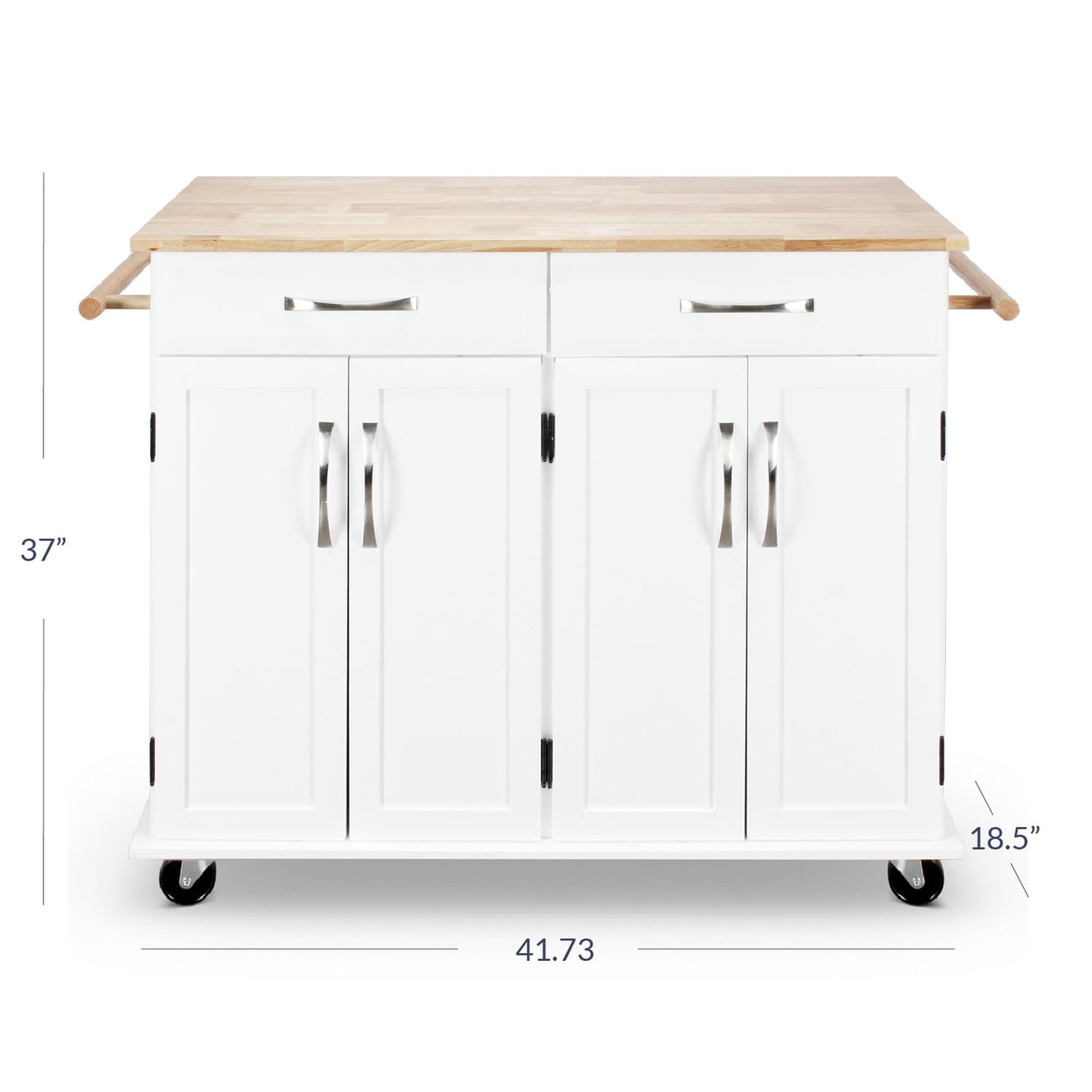 Overall Dimensions of this kitchen island include: 41.73"(L) x 18.5"(W) x 37"(H). We’ve included a step-by-step instruction guide and all necessary hardware necessary for installation.