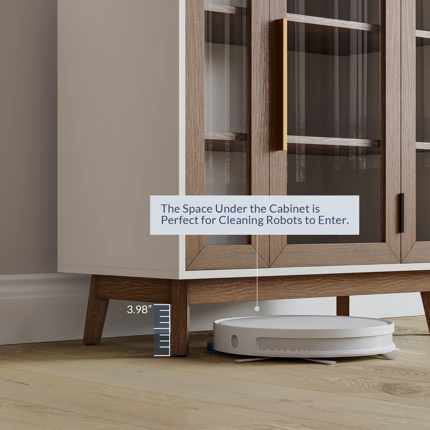 - [ENABLES EASY CLEANING] There's a clearance of 3.98" between the floor and this glass display cabinet, allowing a robot floor cleaner to scrub the floors beneath. Our glass console table has protective foot gliders to prevent scratching on the floors.