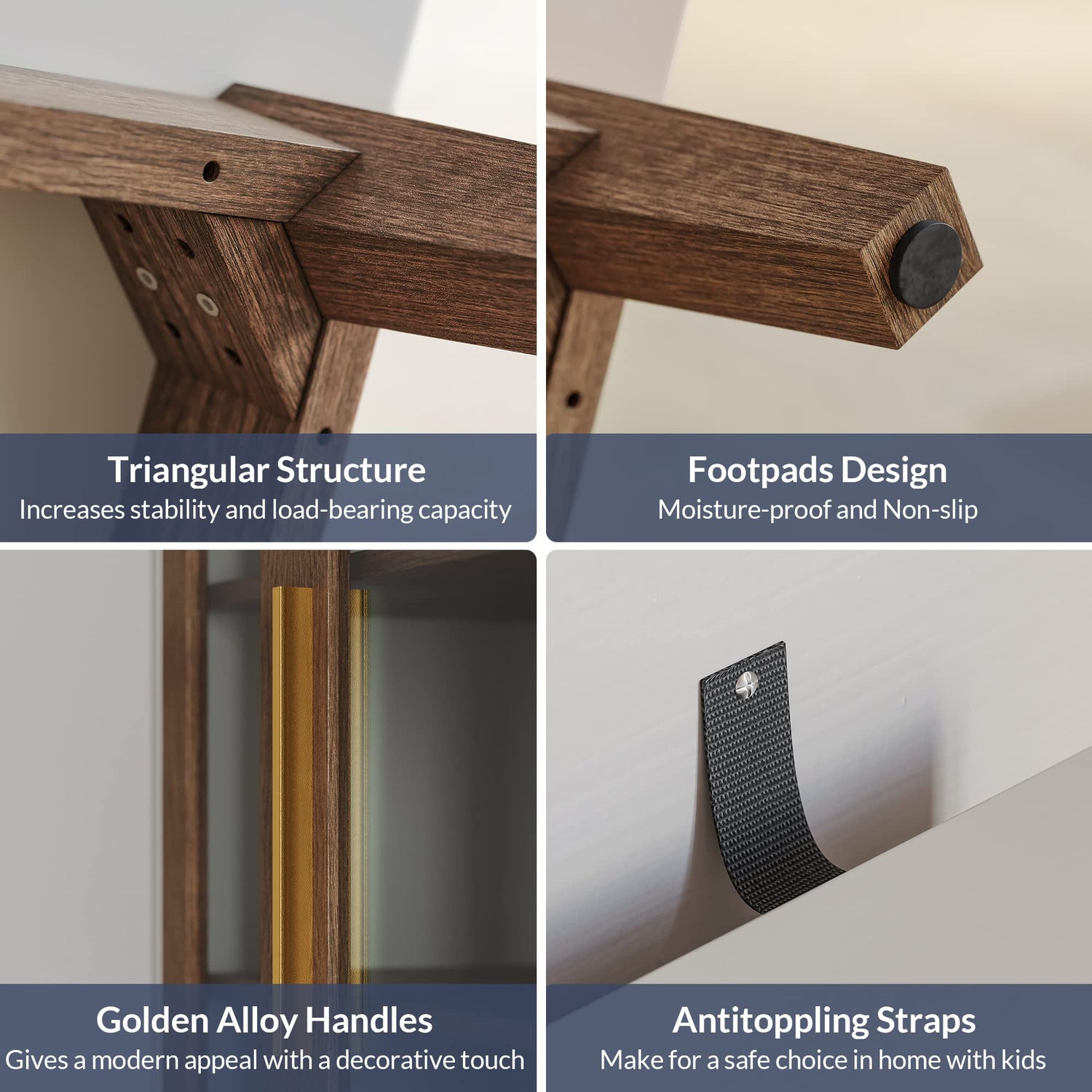 - [STURDY CONSTRUCTION] Premium manufactured wood construction is highly durable. This pantry cabinet has sturdy triangular joints that offer greater rigidity. Fitted with anti-shatter tempered glass door. Anti-tipping straps offer greater stability.