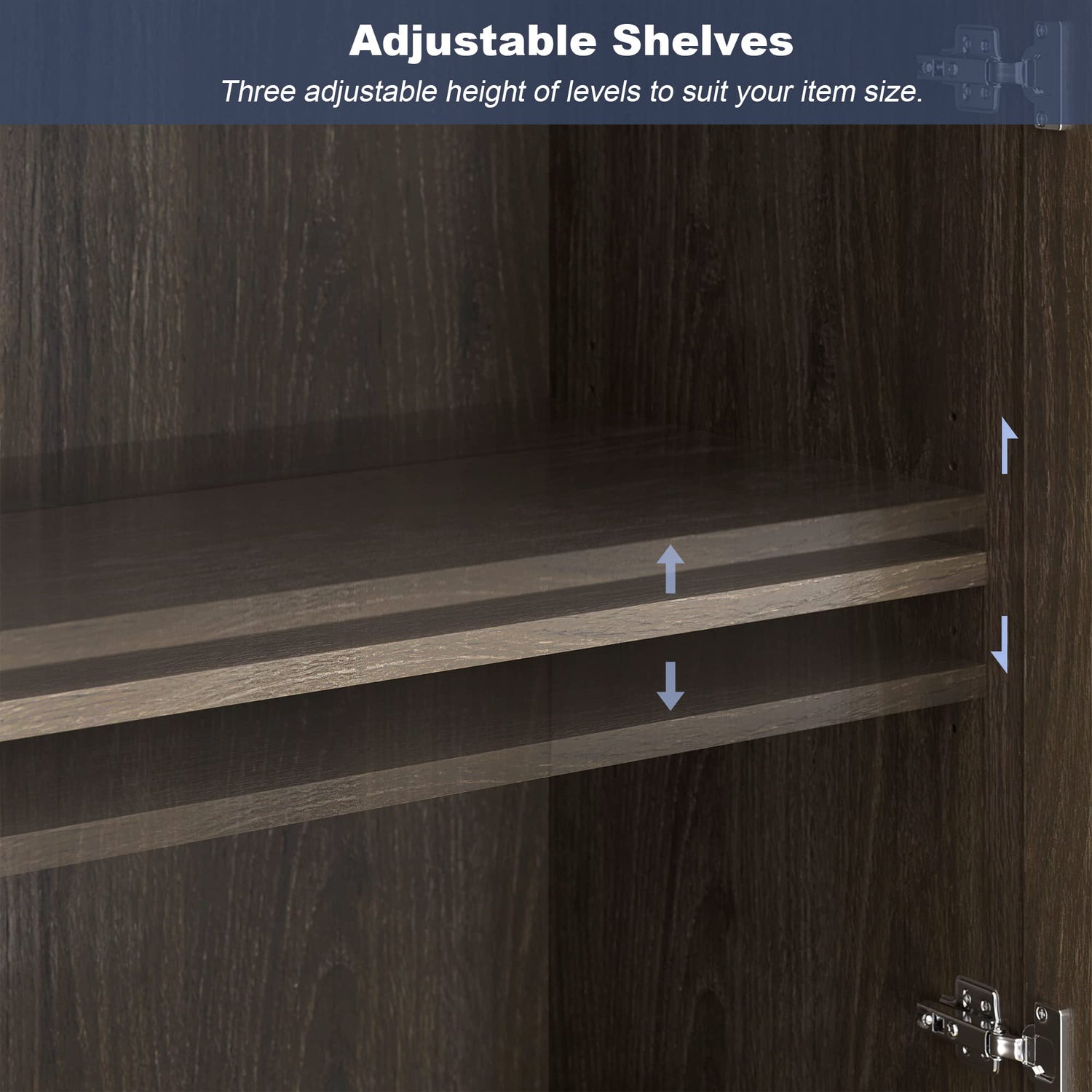 - [STURDY CONSTRUCTION] Built for long-lasting durability thanks to the strong manufactured wood construction. This hardy wooden cupboard server is fitted with tempered glass cabinet doors that are shatter and break-resistant.