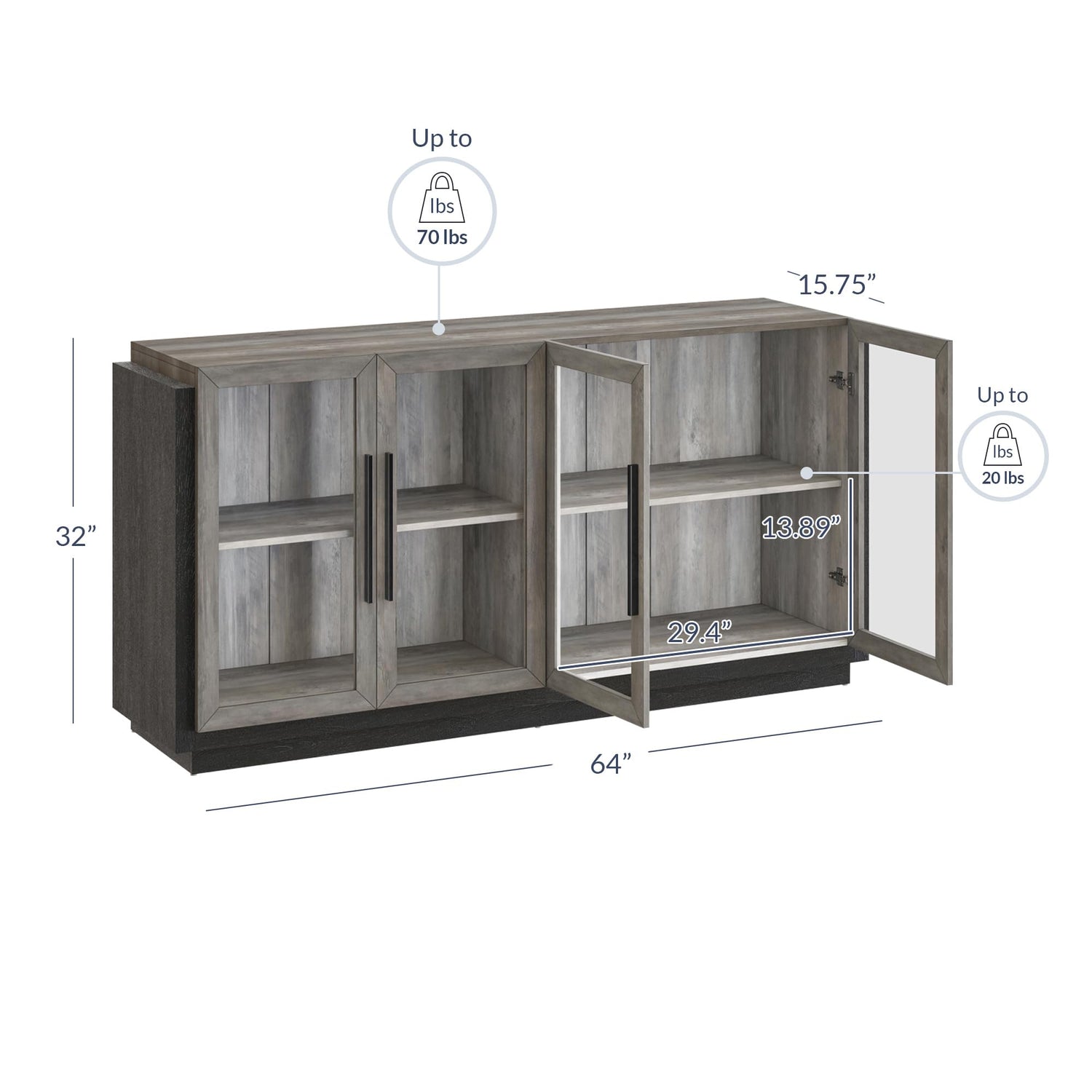 - [MODERN DESIGN] Stylish design with clean lines, mixed color accents, and black alloy handles give this buffet cabinet a contemporary appeal with a decorative touch. Measures 64"L x 15.75"W x 32"H with a capacity of 70 lbs.