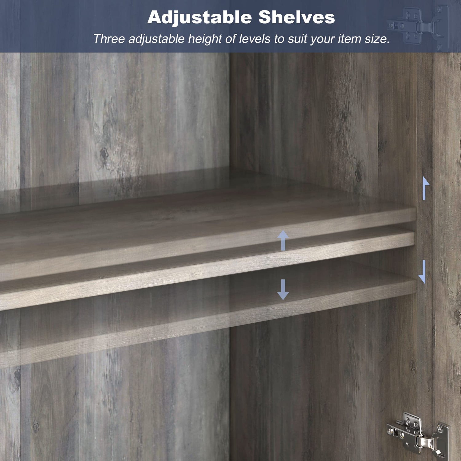 - [SPACIOUS STORAGE] From fine china and utensils to kitchenware and bed linen, this buffet cabinet gives you ample space. Two glass-enclosed cabinets with built-in adjustable shelves allow you to customize the storage space to match your needs.