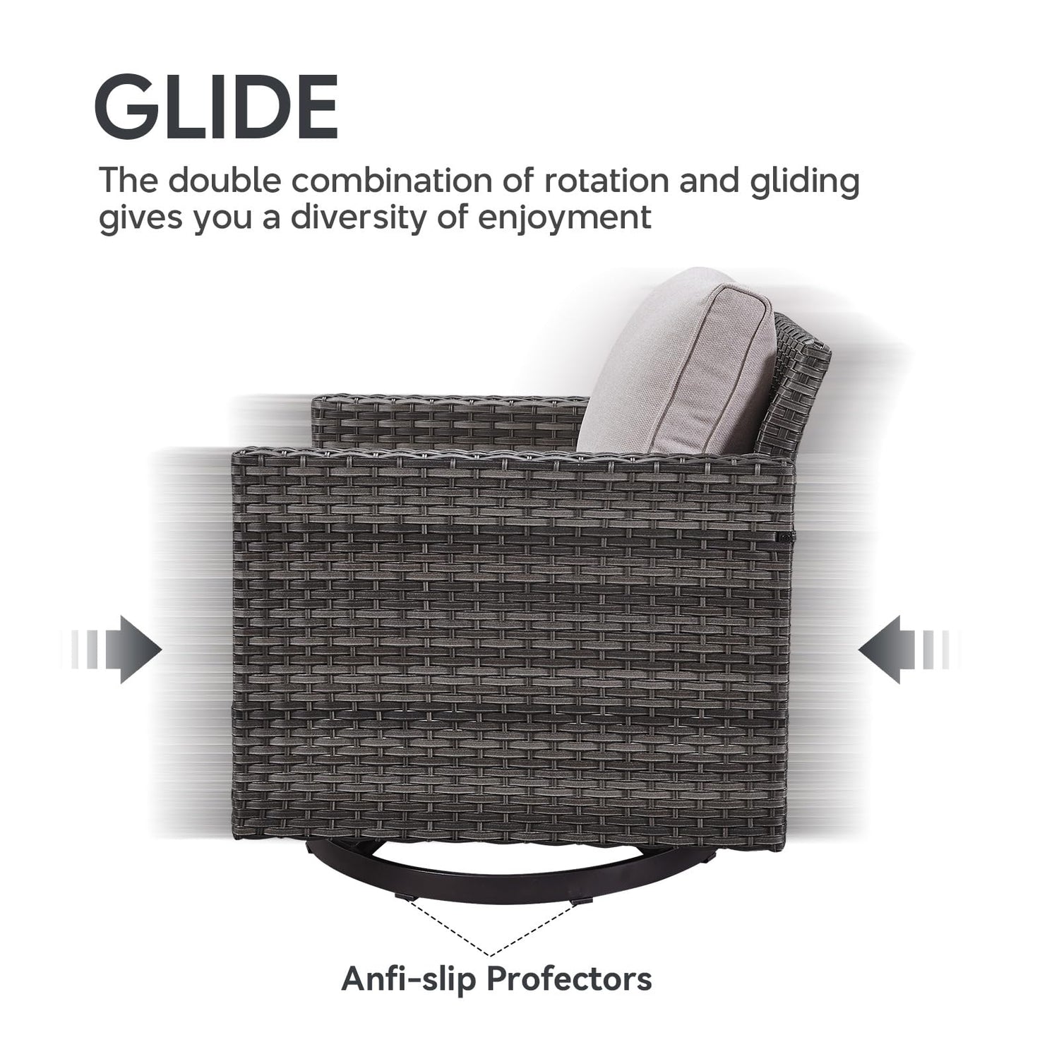 - 【Outdoor Swivel Rocker Chairs】 This Belord outdoor furniture set include 2 wicker swivel rocker chairs, 1 outdoor sectional wicker sofa, 2 outdoor rattan ottomans, the wicker swivel chairs have an 18.5" high back and 25.5" deep seat (cushion thickness not included), the oversized patio swivel chair offers plenty of space for your body, 3.4" wide arms for better arm support and a maximum weight capacity of 350 lbs, perfect for relaxing in the warm sunshine.