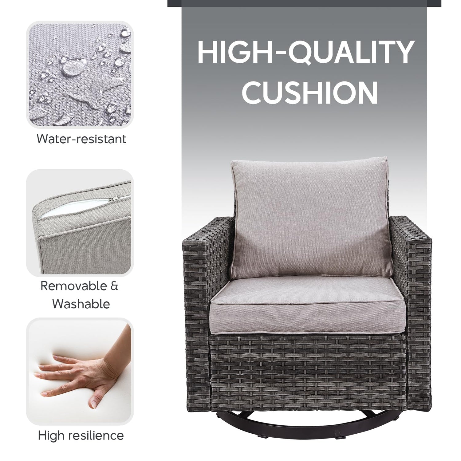 - 【All-weather Wicker & Water-Resistant Cushion】 Cushion-covered patio wicker furniture set features high quality foam cushions that are comfortable, soft and rebounding. The cushion cover is made from water-resistant olefin outdoor fabric with a smooth zip, which is not only water-resistant but can also be easily removed and washed.