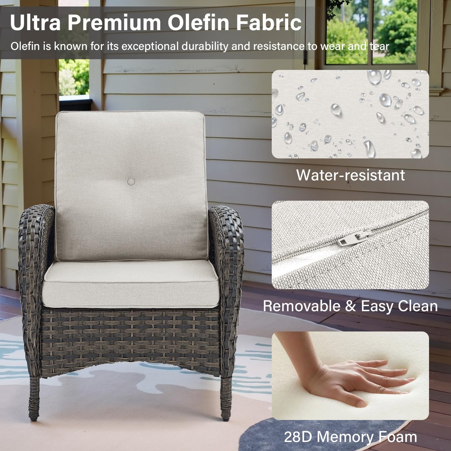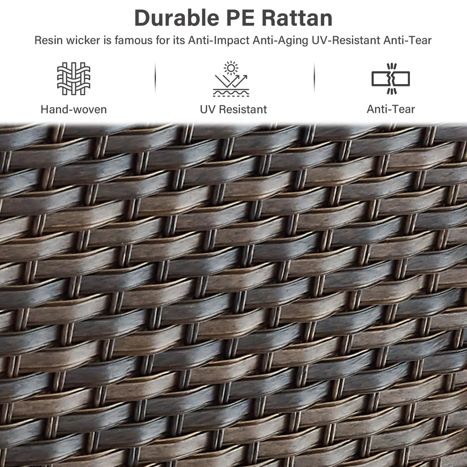 - 3.All-weather PE Wicker: Featuring a long-lasting woven finish, this style is not only incredibly durable but also provides a versatile appearance. The handcrafted details of this material allow this patio chairs set to blend seamlessly with your outdoor decor.