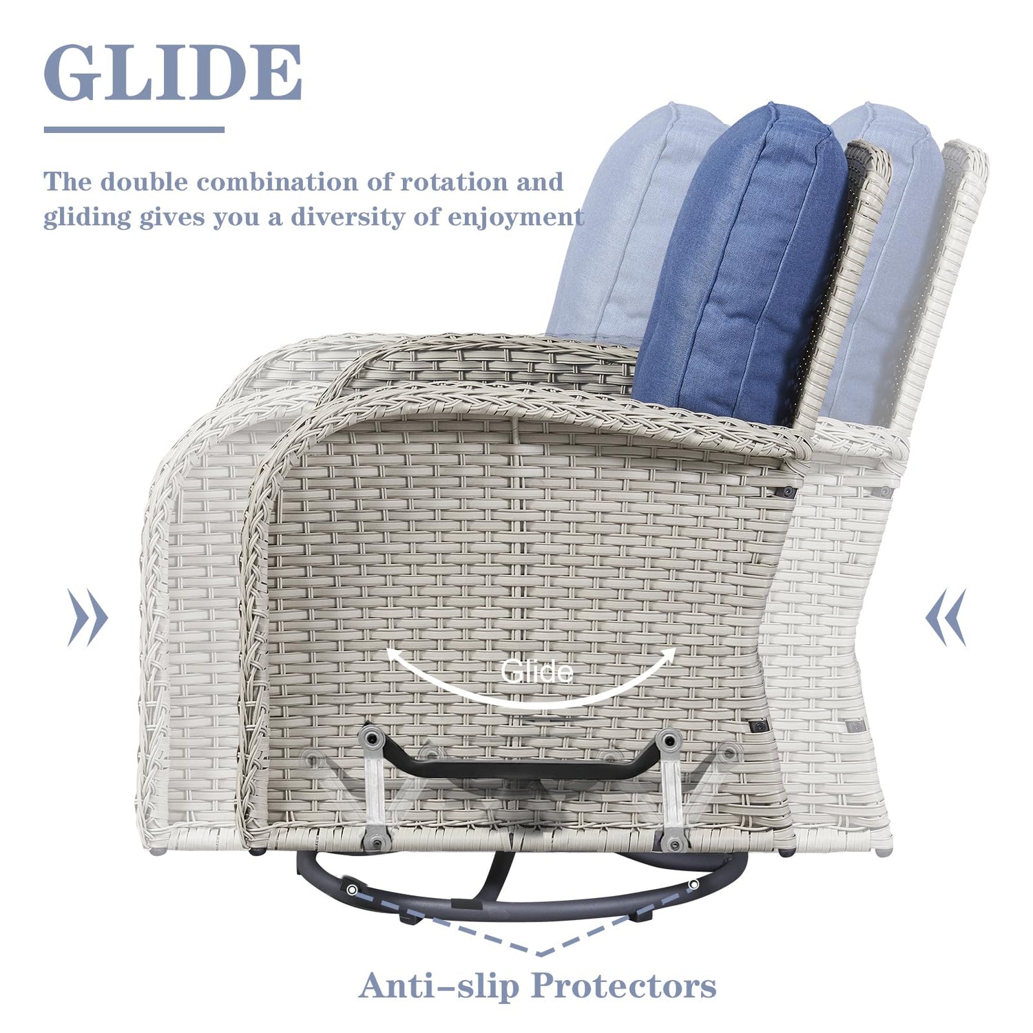Belord Patio Wicker Chairs Swivel Rocker - Outdoor Swivel Rocking Chairs Set of 2 with Rattan Side Table,3 Piece Patio Swivel Glider Chair Furniture Sets for Patio Porch Pool Light Beige/Blue
