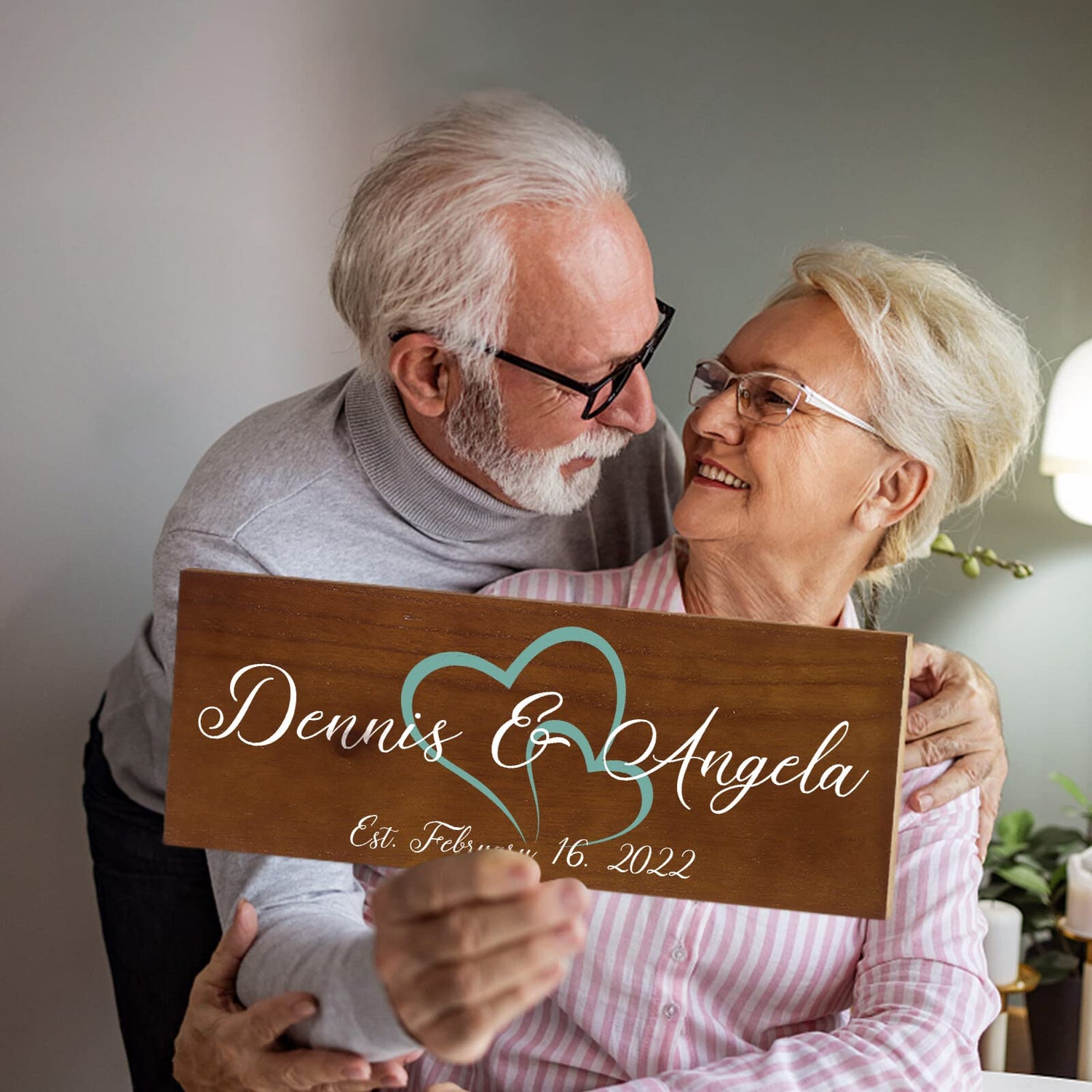 Bemaystar Personalized Custom Wedding Gifts, Custom Name/Date Wooden Signs, For Unique Anniversary Keepsakes, Gift Ideas, Bridal Shower Gifts, Love Memories 15" x 6"