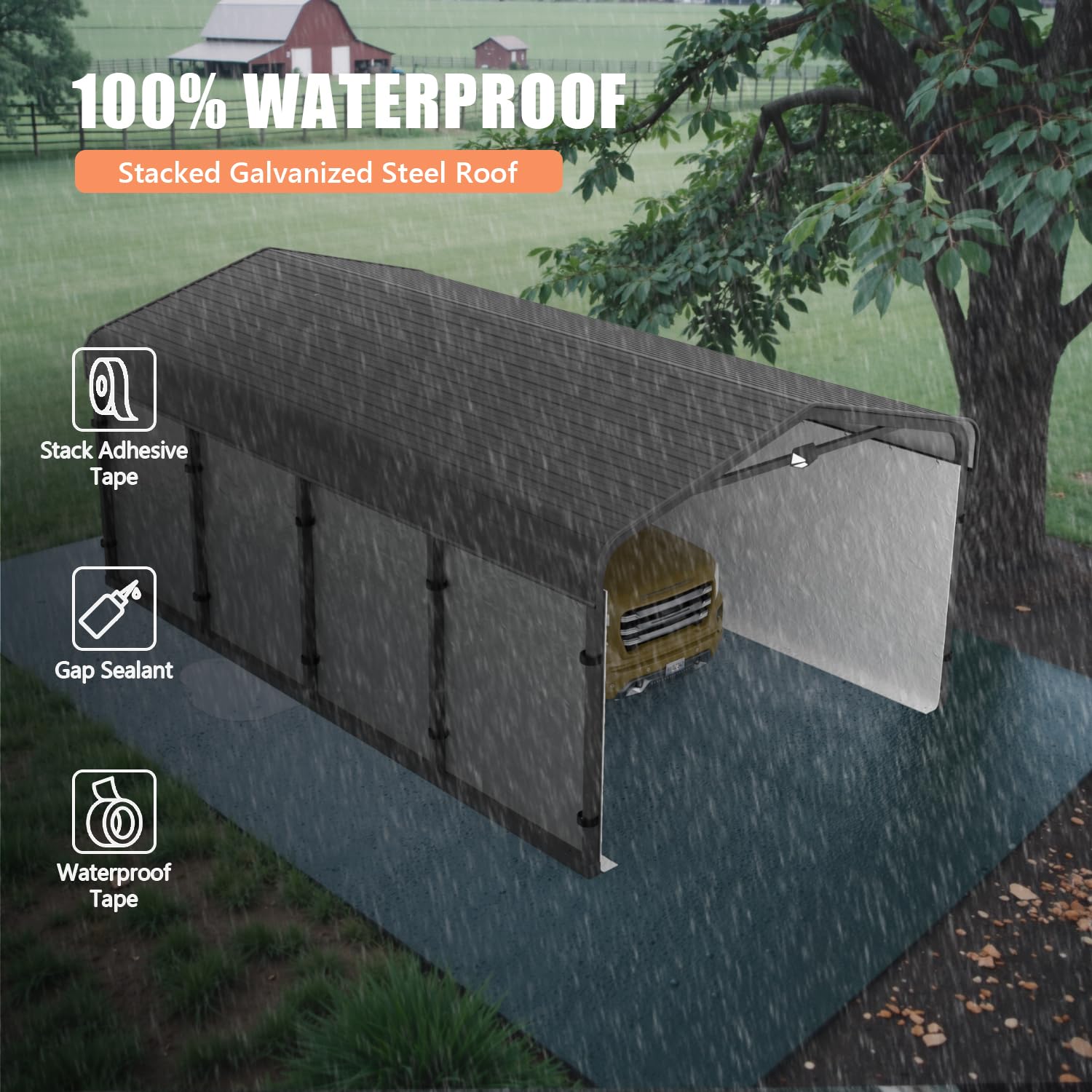 - 100% Waterproof - The roof structure of our carport is similar to roof tiles, each piece overlaps with each other. In addition, we also equip weather strip, sealant filler, leak proof adhesive strip and 2 PE sidewalls