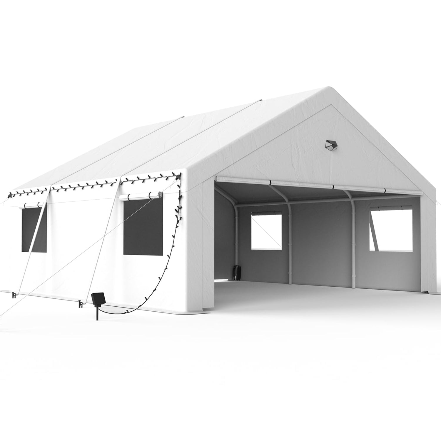 Benass Carports 20x20 Heavy Duty, Portable Garage 20x20 with 2 Roll Up Zipper Doors and Mesh Windows, Driveway Car Port Canopy, White