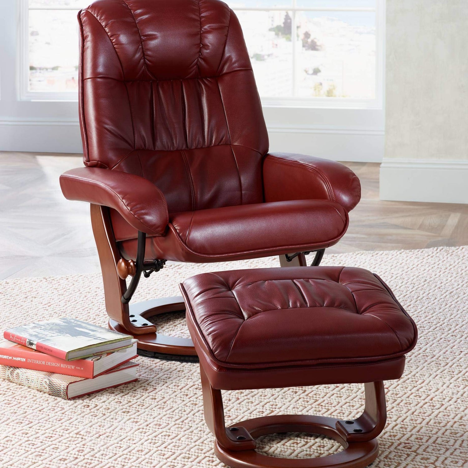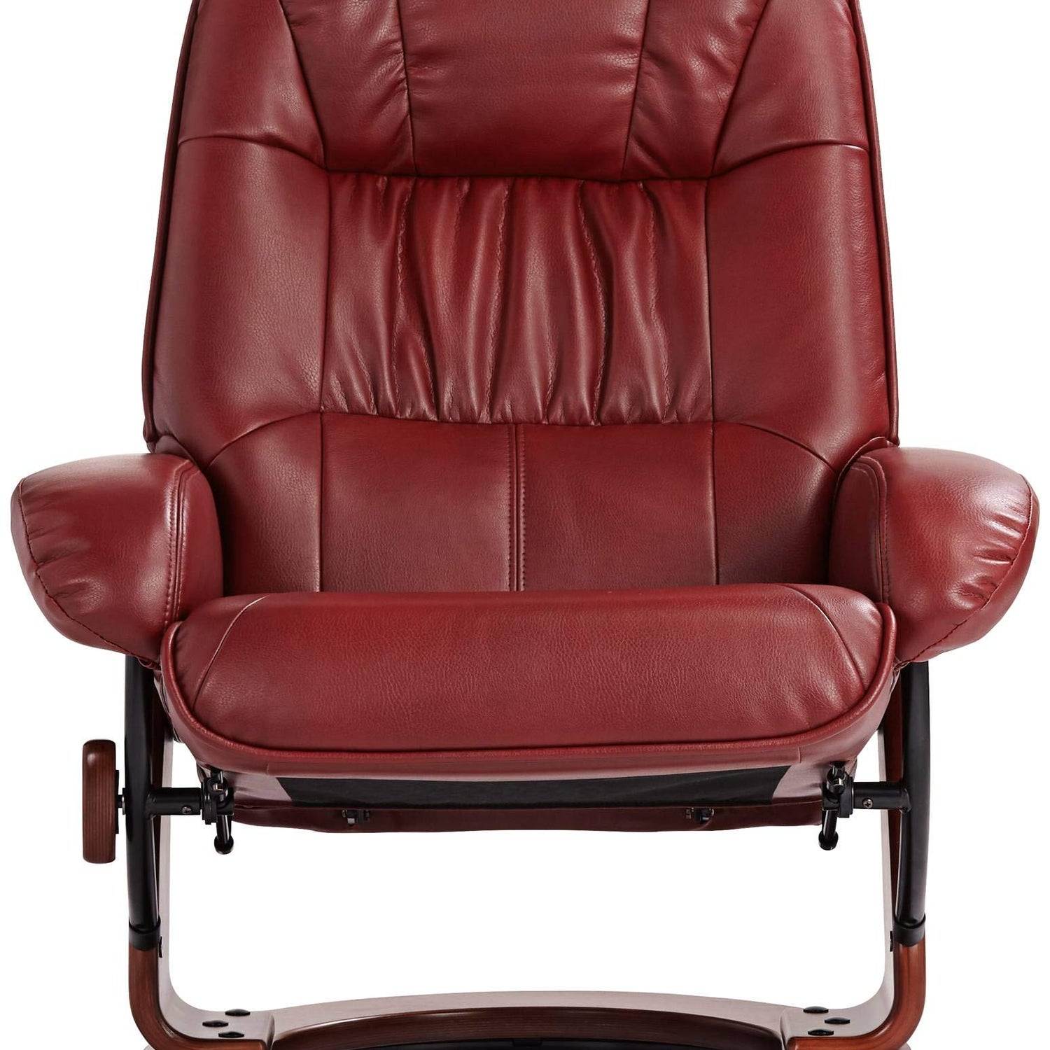 Benchmaster Kyle Ruby Red Swivel Faux Leather with Ottoman Recliner Chair Modern Armchair Ergonomic Push Manual Reclining Footrest Upholstered for Bedroom Living Room Reading Home Relax Office