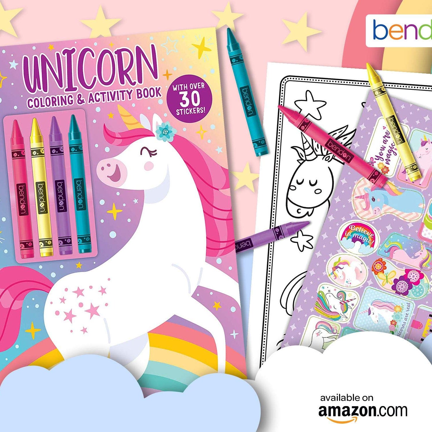 Bendon Inc. Unicorn Coloring and Activity Book with Crayons and 30 Stickers (48470)