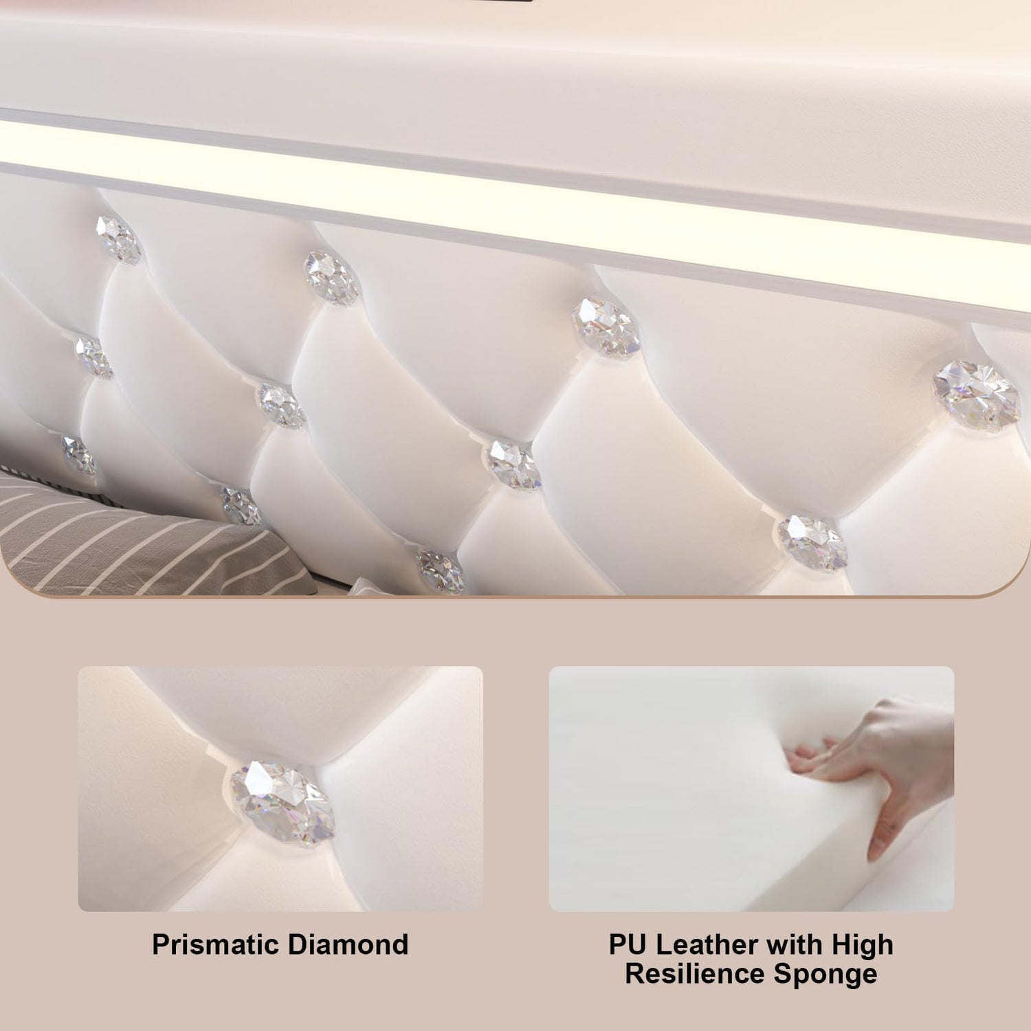 - Faux Leather Upholstery: Upholstered with high-grade faux leather, filled with dense foam padding for a soft and comfortable touch, this bed frame full size with a diamond tufted headboard will add sophisticated style to any bedroom.