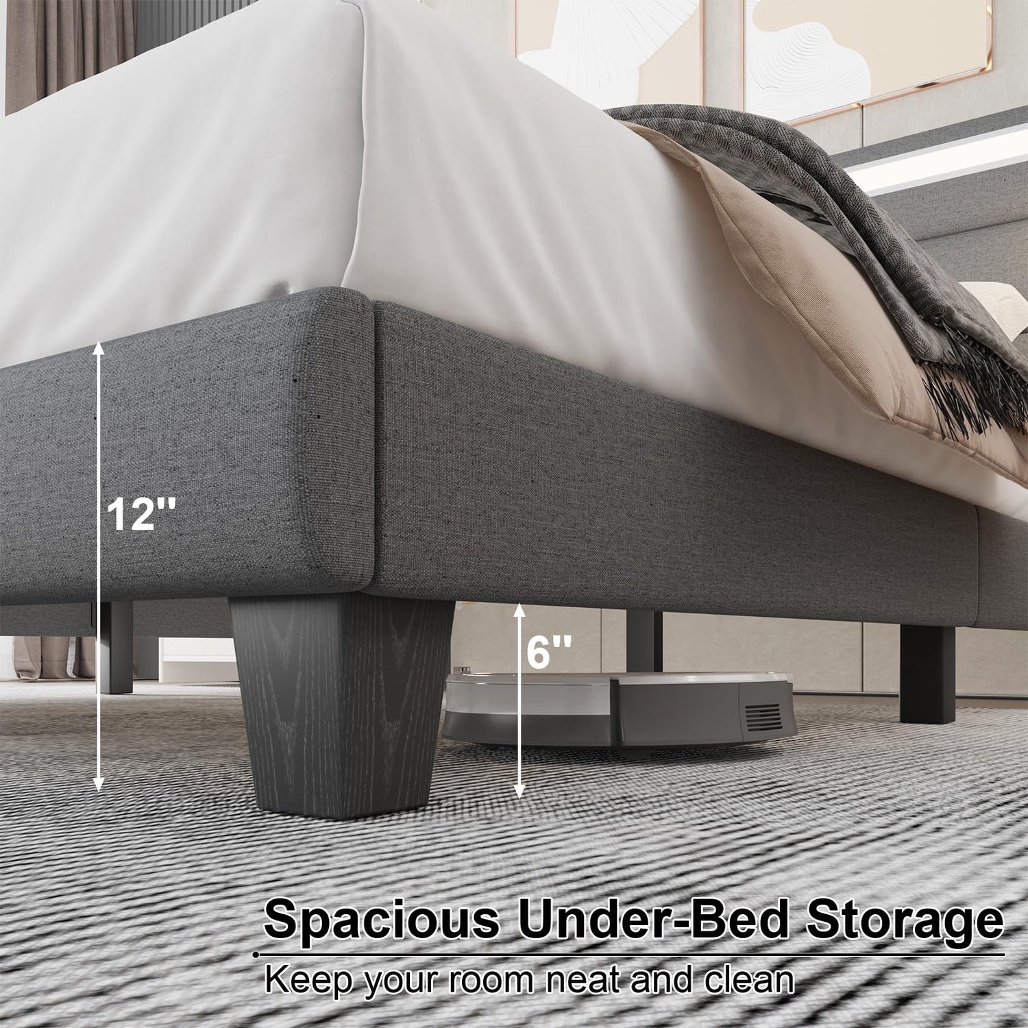 - 【Sturdy Construction】Upholstered bed frame has 12 wooden support bars and 5 metal support legs, with 2 thick wooden support legs that can easily support up to 1000 pounds of weight, allowing you to lie on the same bed with your family and enjoy their company.