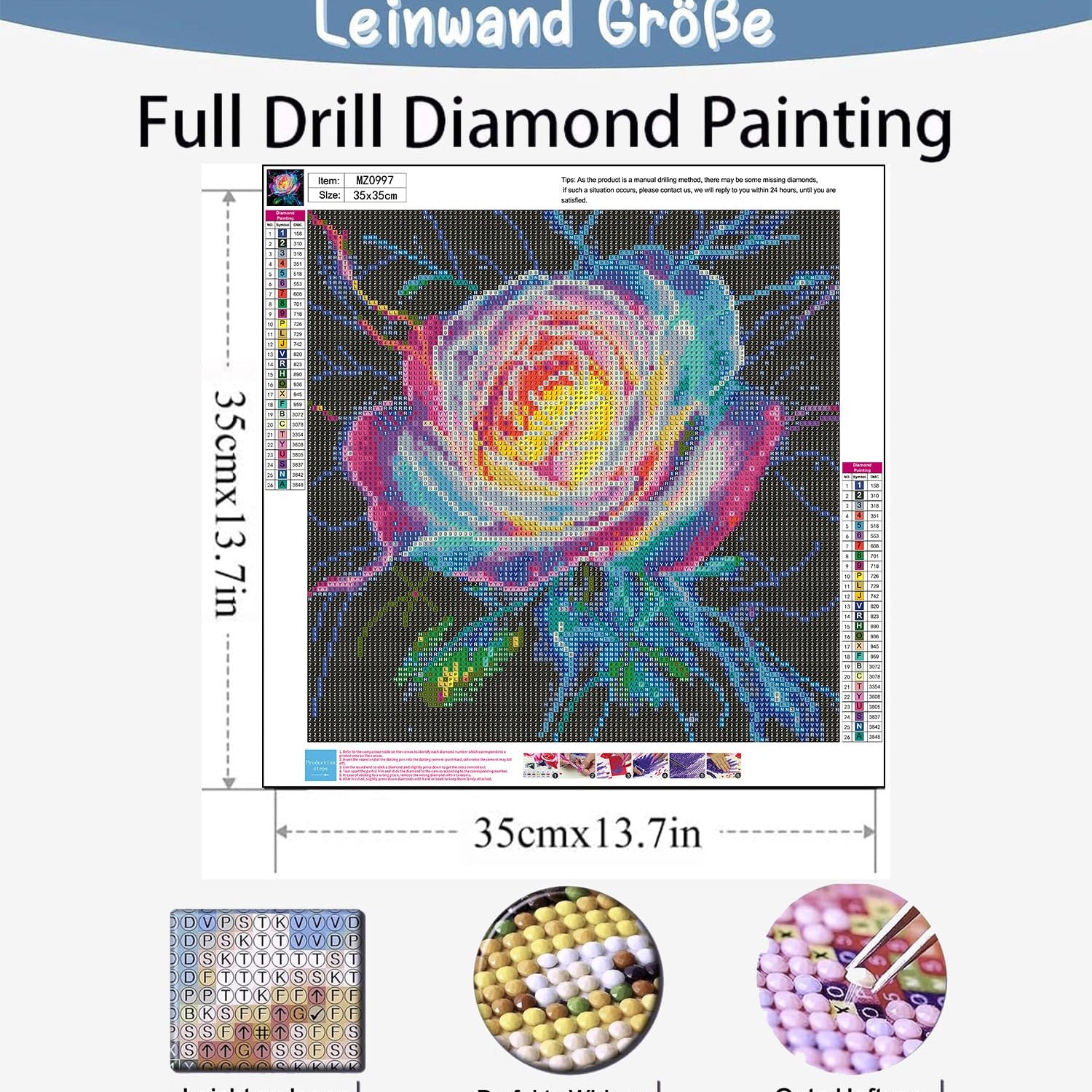 - Easy to Read: Rose flower Diamond art numbers and symbols on the canvas are clear and easy to read. You get about 30% extra beads in every color to prevent the occurrence of insufficient diamonds. The drills adhered to the canvas without difficulty, and the diamonds stays on very good, wouldn’t fall off.