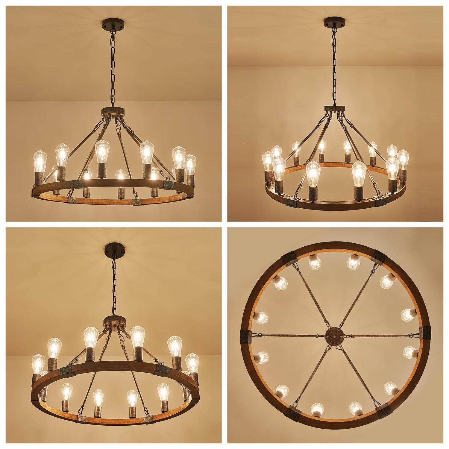 - Wide Application Farmhouse Chandelier: The 12-light design provides 360° light coverage that is soft and warm without being harsh, making it the perfect accent for a dining room, entryway, living room, and foyer. In addition to brightening up your home, this Large Farmhouse Chandelier is also a great choice for a housewarming or holiday gift