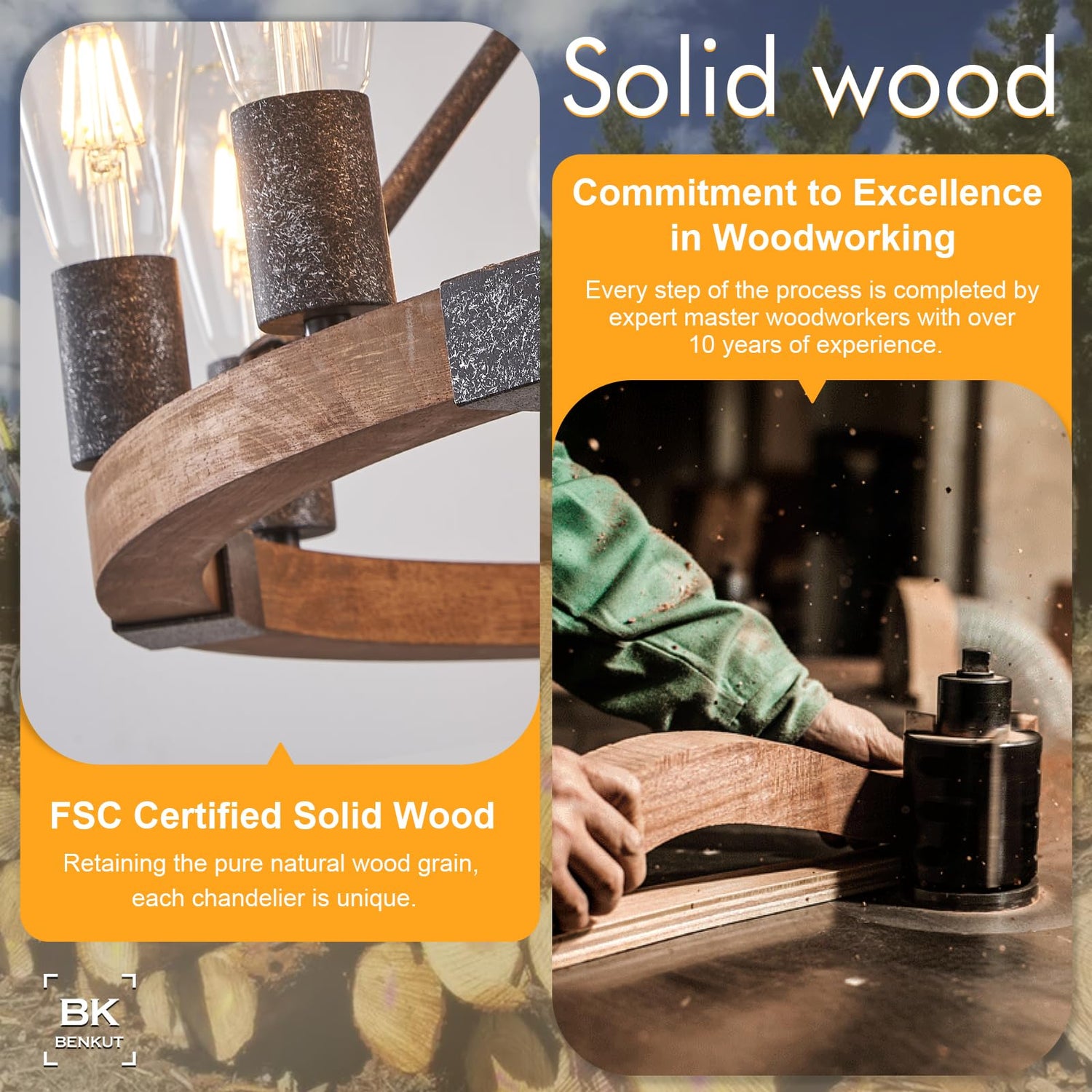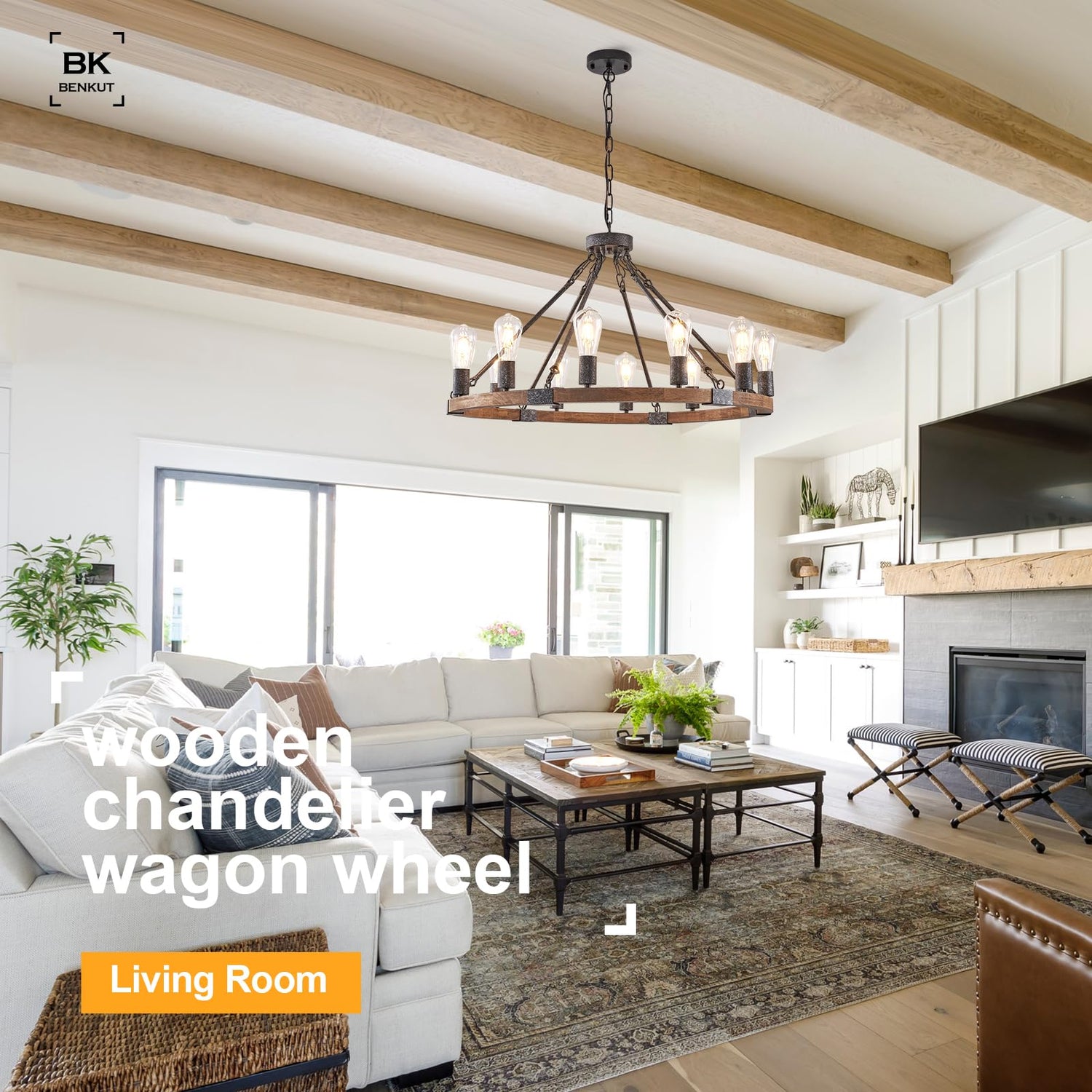- Wagon Wheel Chandelier: This Black Wood Chandelier is made of high-quality original wood and durable metal with an aged finish, creating a vintage ambiance perfect for farmhouse, rustic, vintage home decorating styles