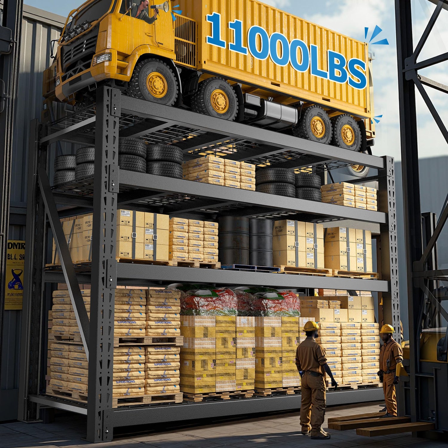 - 【Ultra-Sturdy Coated Steel】 The metal shelving delivers stability with industrial-grade thickness that won't bend or wobble under heavy loads. The reinforced steel uprights and crossbeams feature a industrial-grade coating that resists impacts, scratches keeping its structural integrity in garages, warehouses and humid environments for decades.