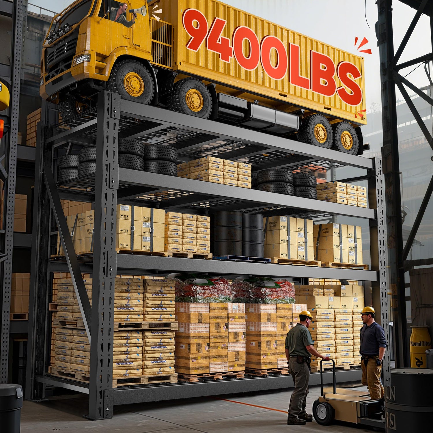 - 【 9400LBS Extra Heavy Duty Garage Shelving】Bepatio extra storage shelves units is constructed with reinforced steel beams on the sides, each column is wider and thicker than the standard model, and 4 extra support bars for added stability. With a total load capacity of up to 9400LBS, whether you are storing large containers or heavy machinery, our garage shelves can meet your needs.