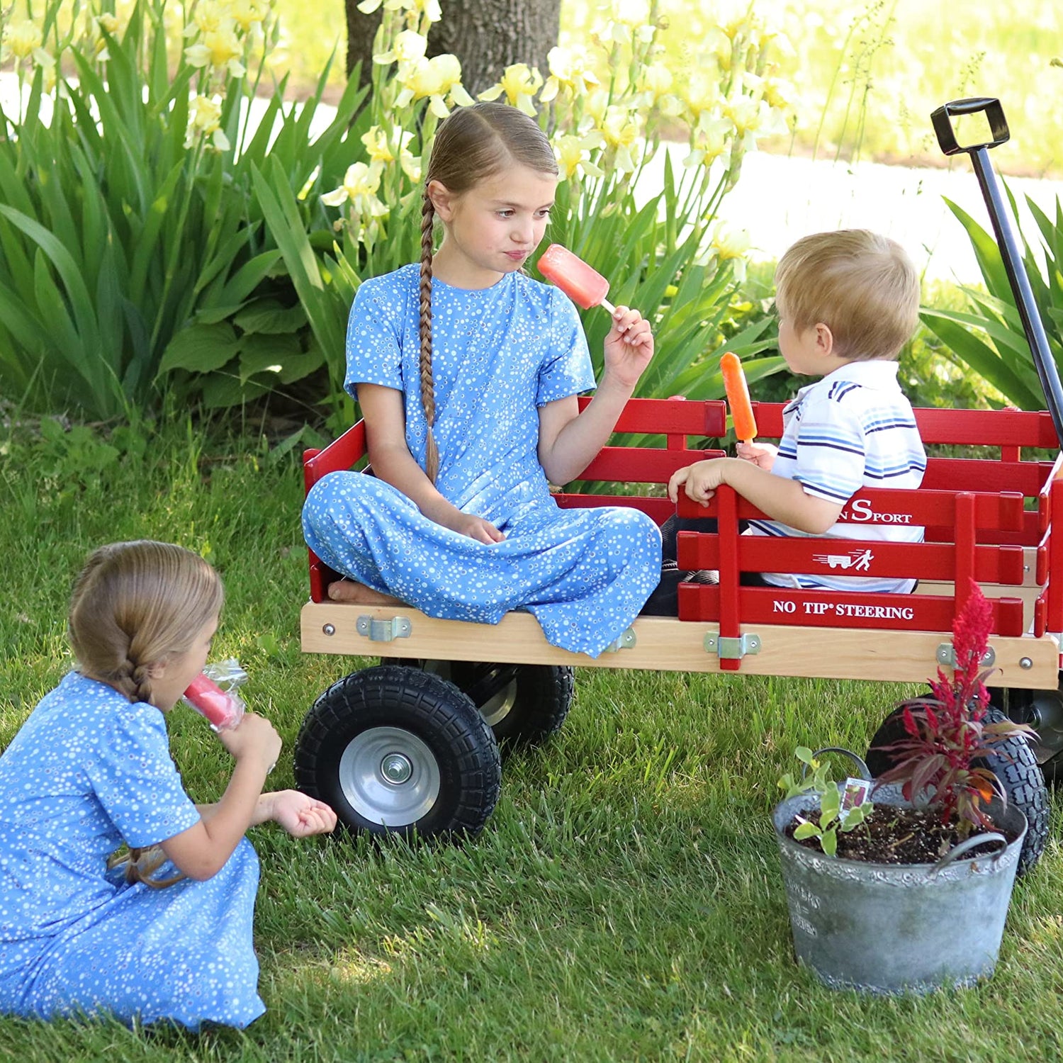 - Perfect Wagon for Pulling Kids with a 36" Long Wooden Bed and Hardwood Removable Side Rails.