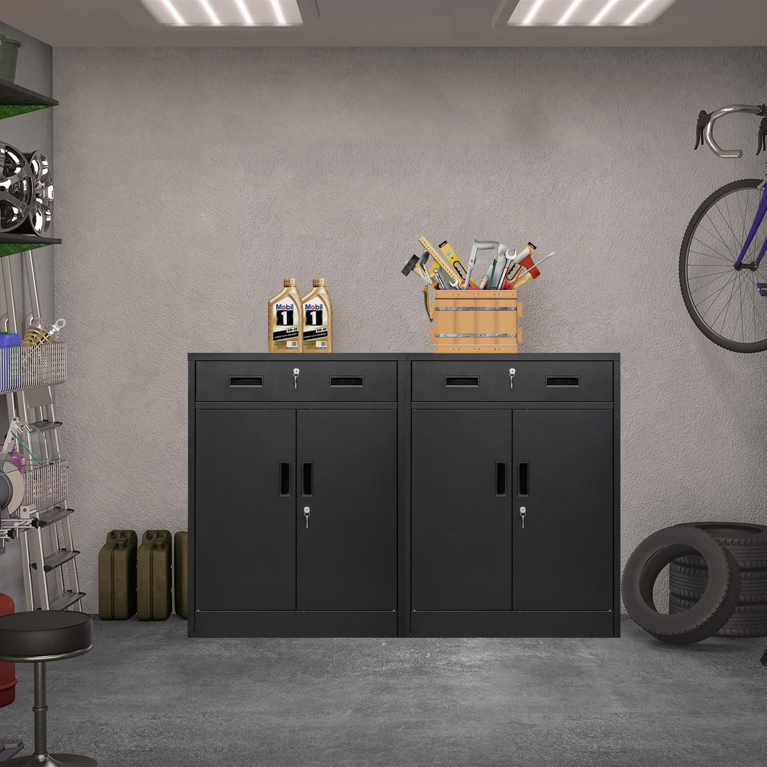 BESFUR Locking Storage Cabinet, Metal Cabinet with Oversized Drawer, Office Storage for Home, Garage, School - Black
