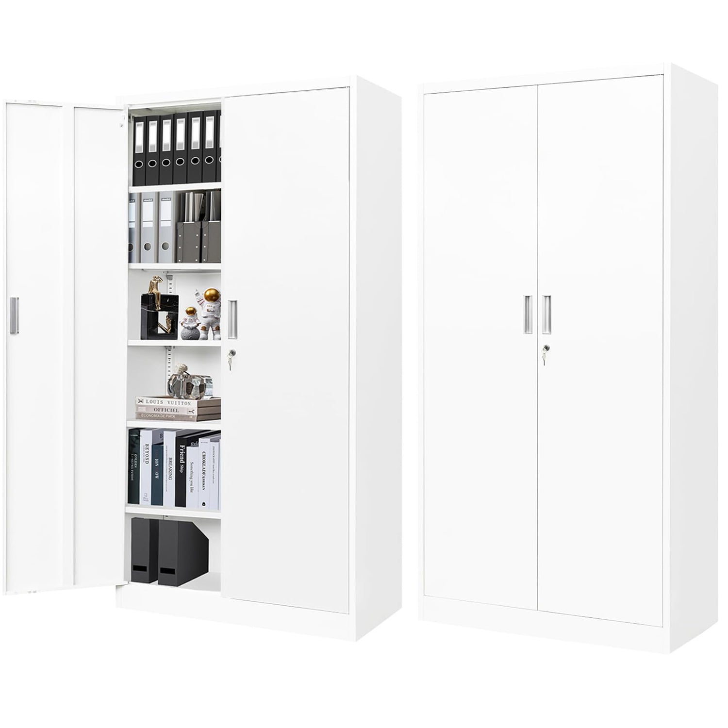 BESFUR Metal Cabinet, Locking Storage Cabinet with 5 Shelves and 2 Doors, Black Garage Cabinet for Office, Classroom, Garage - White
