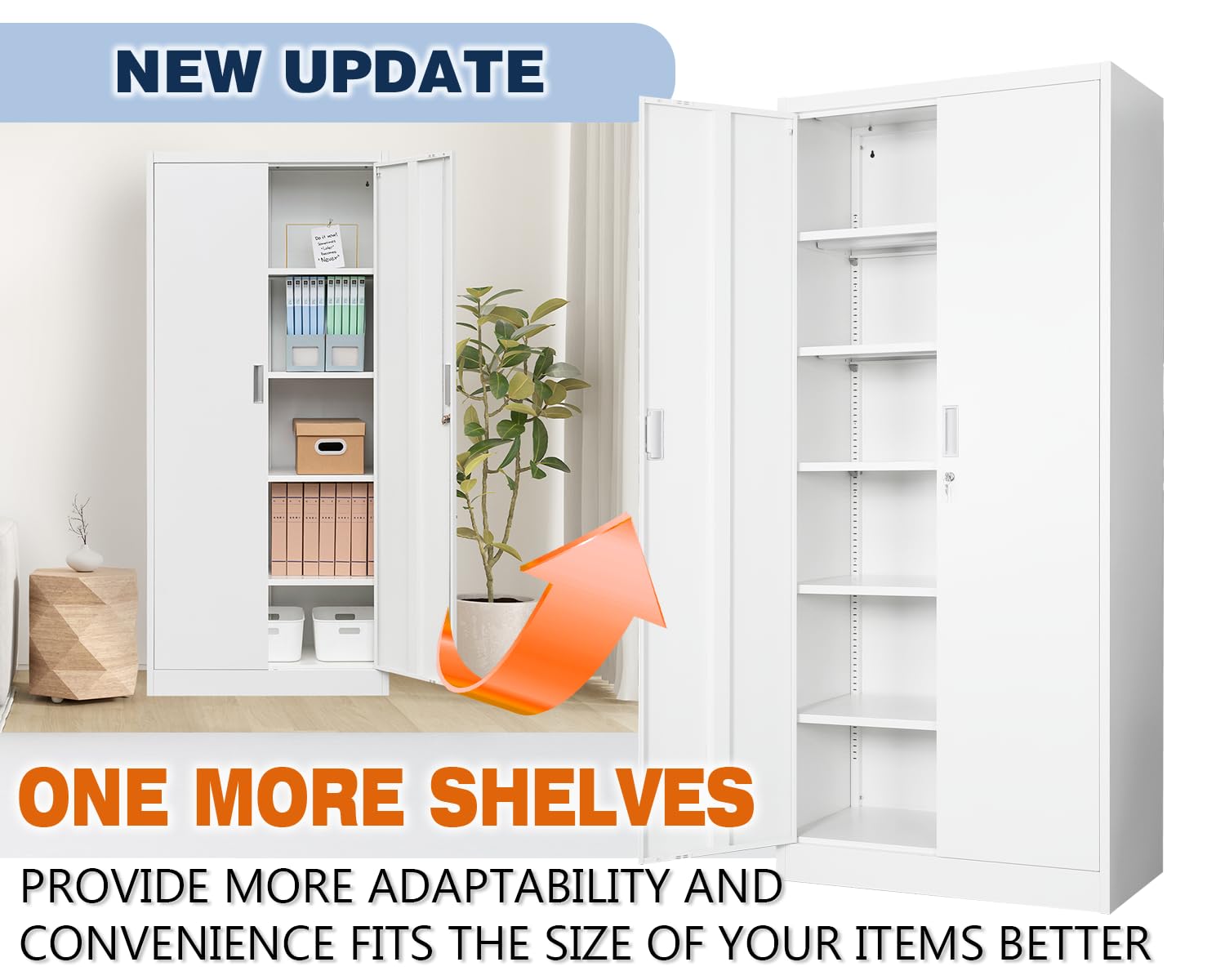 - Adjustable Shelf Height: The five adjustable shelves and one shelf of this metal storage cabinet offer adaptability and convenience. No matter what your storage needs are, you can create a unique storage space tailored to your requirements