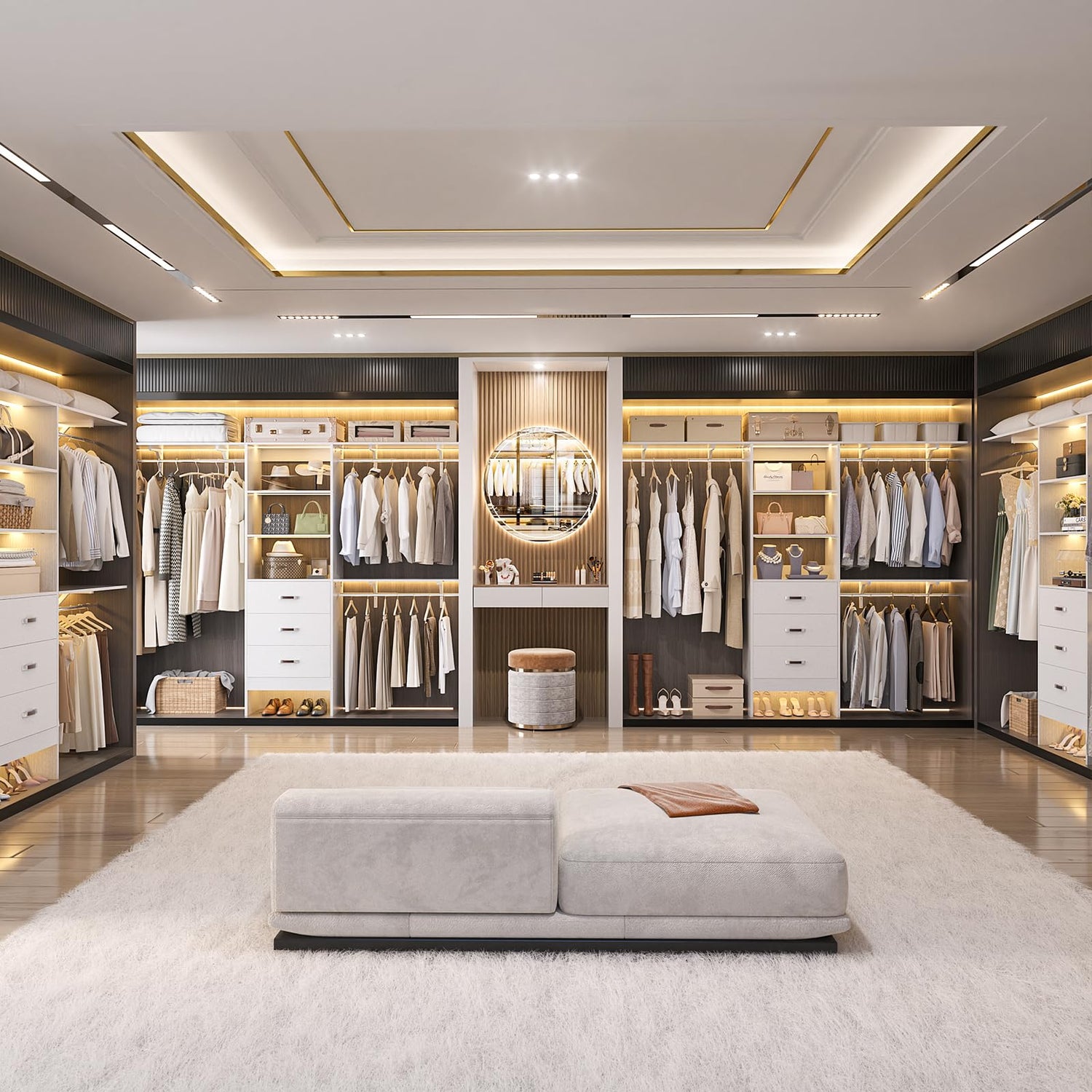 - Heavy-Duty Closet Rack: Constructed by height quality MDF board and sturdy premium metal frames, equipped with anti-fall equipment, it has a high stabilization, which can maintain stability and durability while you use it. Our closet system can bear 1000+ lbs to manage seasonal changes in your open wardrobe closet