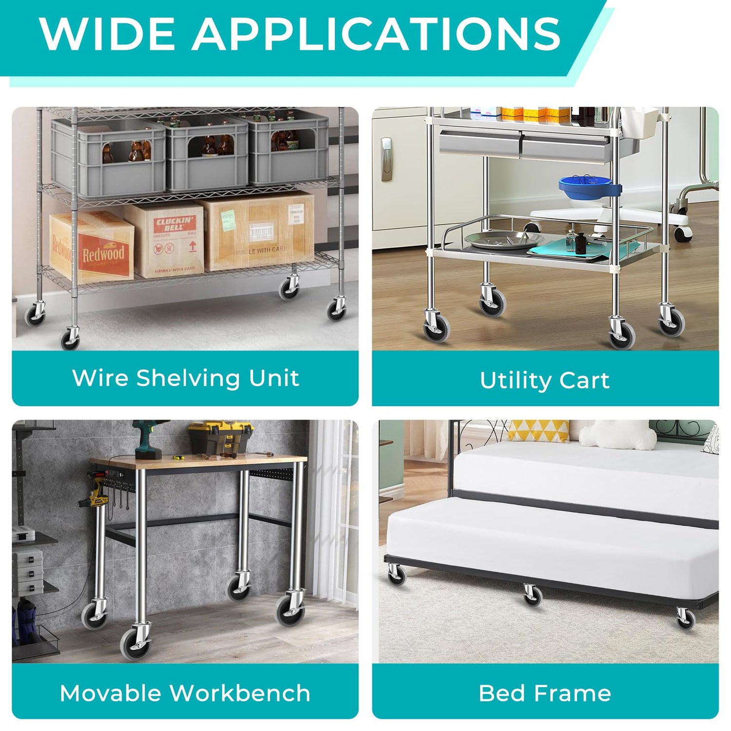 - 【Wide Applications】Perfect replacement wheels for dolly cart, wire shelving rack, work table, grill cart, chair, craftsman stool, hand truck, metal frame, cabinet etc.