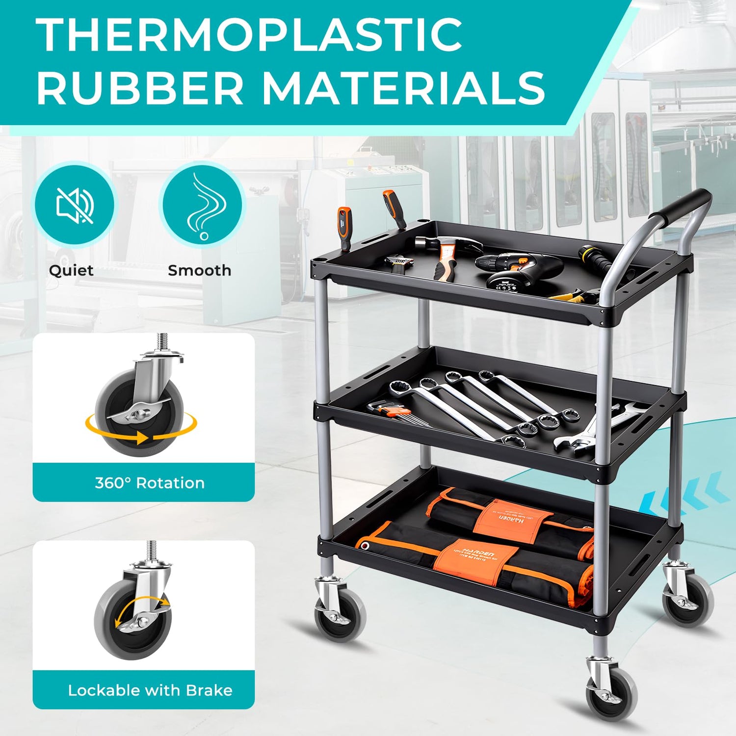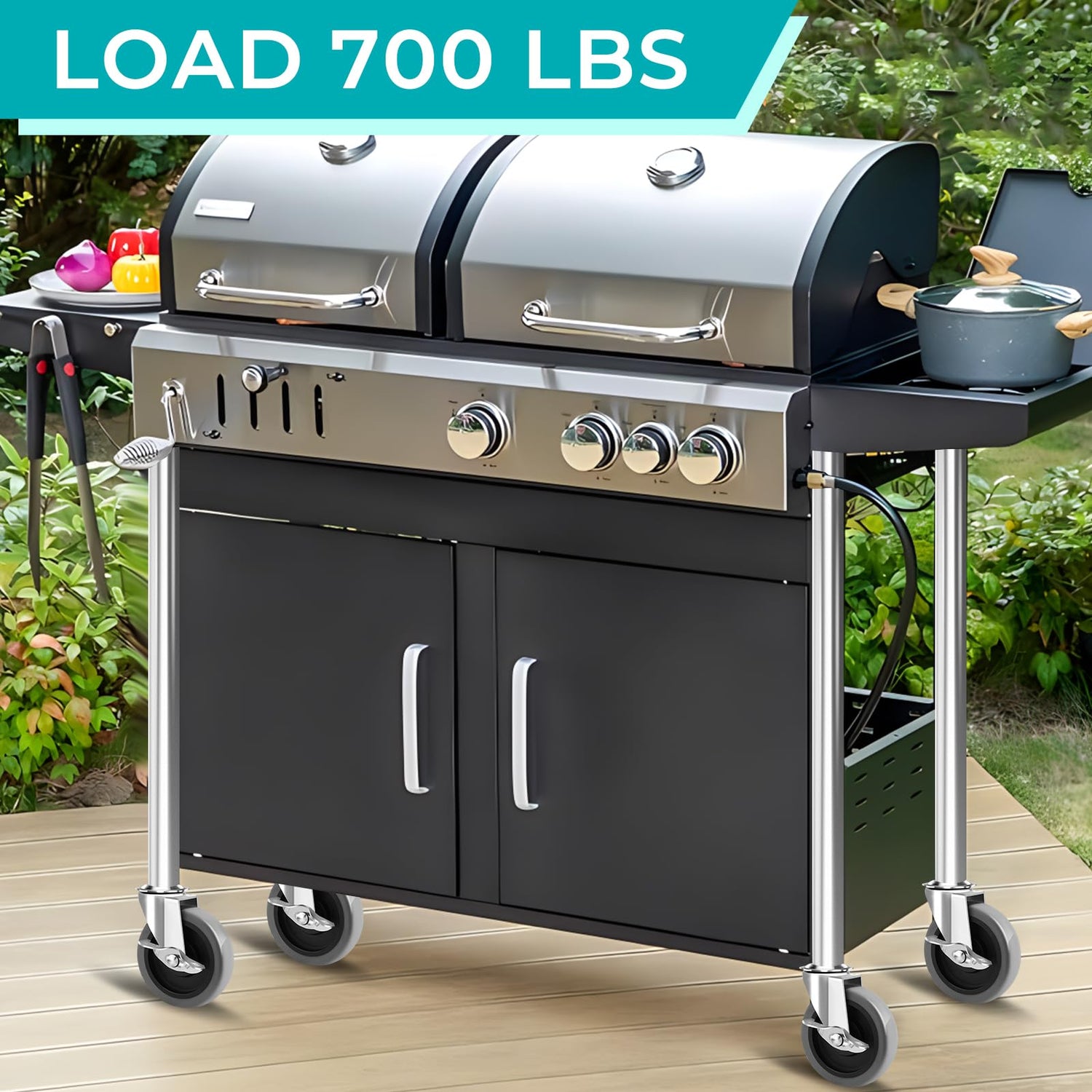 - 【700 LB Load Capacity】4 inches diameter thermoplastic rubber stem caster, 175lbs load capacity per caster wheel and 700lbs of four castors total.