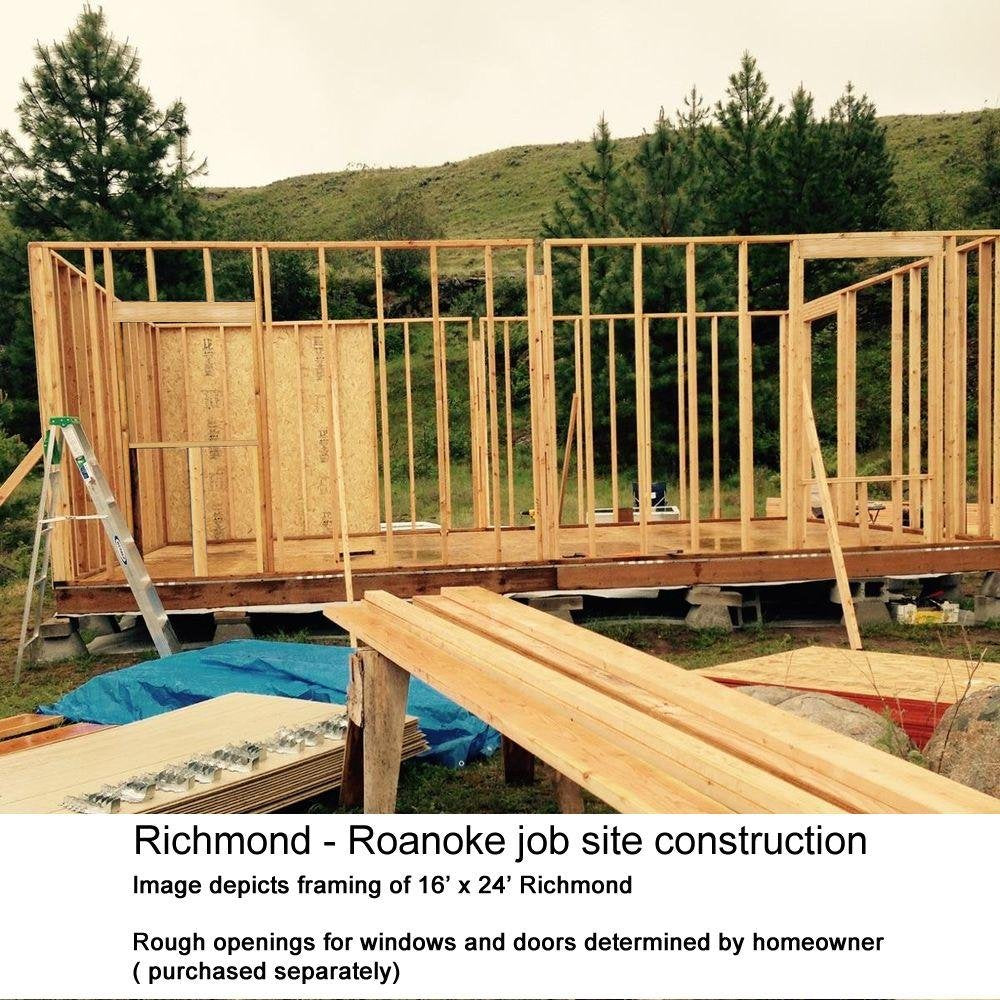 Details: The Richmond DIY storage kit offers you lots of room for storage, a great workshop, a backyard retreat, or whatever your needs may be in a large building. This is NOT a pole building. Built with 2×4 construction studs is spaced 16in. o.c. Trusses are 2×6 spaced 24in. o.c. The first floor has 7ft. 5in. headroom to bottom of 2×8 floor joists. The loft area has 7ft. 1in. headroom at the center of the structure. Both floors offer an unobstructed space so to provide the maximum amount of area to utilize as you see fit. During construction, you may add interior walls in the locations of your choosing. The Richmond is sold without doors and windows or stairs so that the homeowner can choose the type, style, quantity, and style desired. This allows you to completely customize your new cabin or workshop the way you want it. Order with the optional stair package ( not included ) for access to the second floor or buy the style you desire locally.