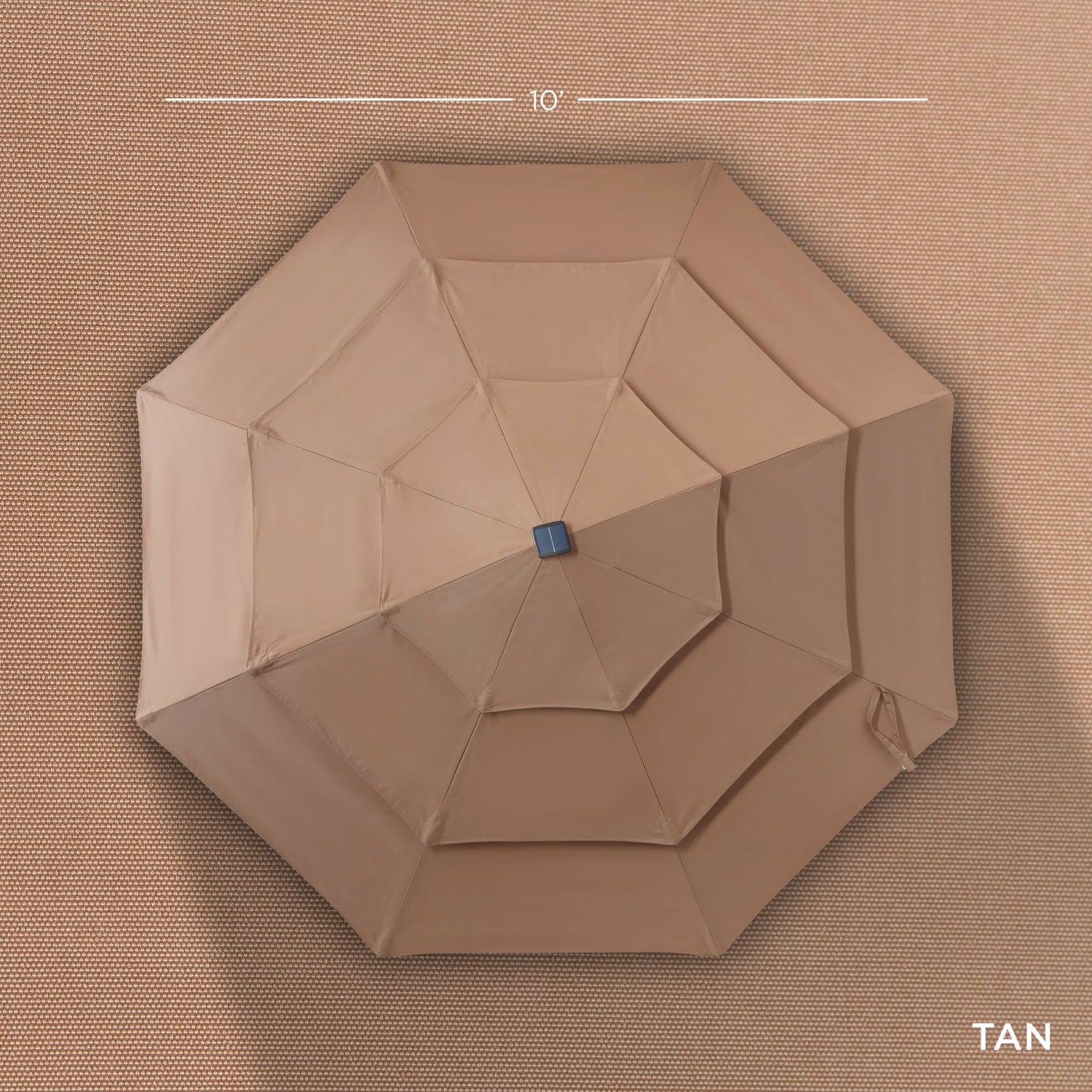 Best Choice Products 10ft 3-Tier Solar Patio Umbrella, Outdoor Market Sun Shade for Backyard, Deck, Poolside w/ 24 LED Lights, Tilt Adjustment, Easy Crank, 8 Ribs - Tan