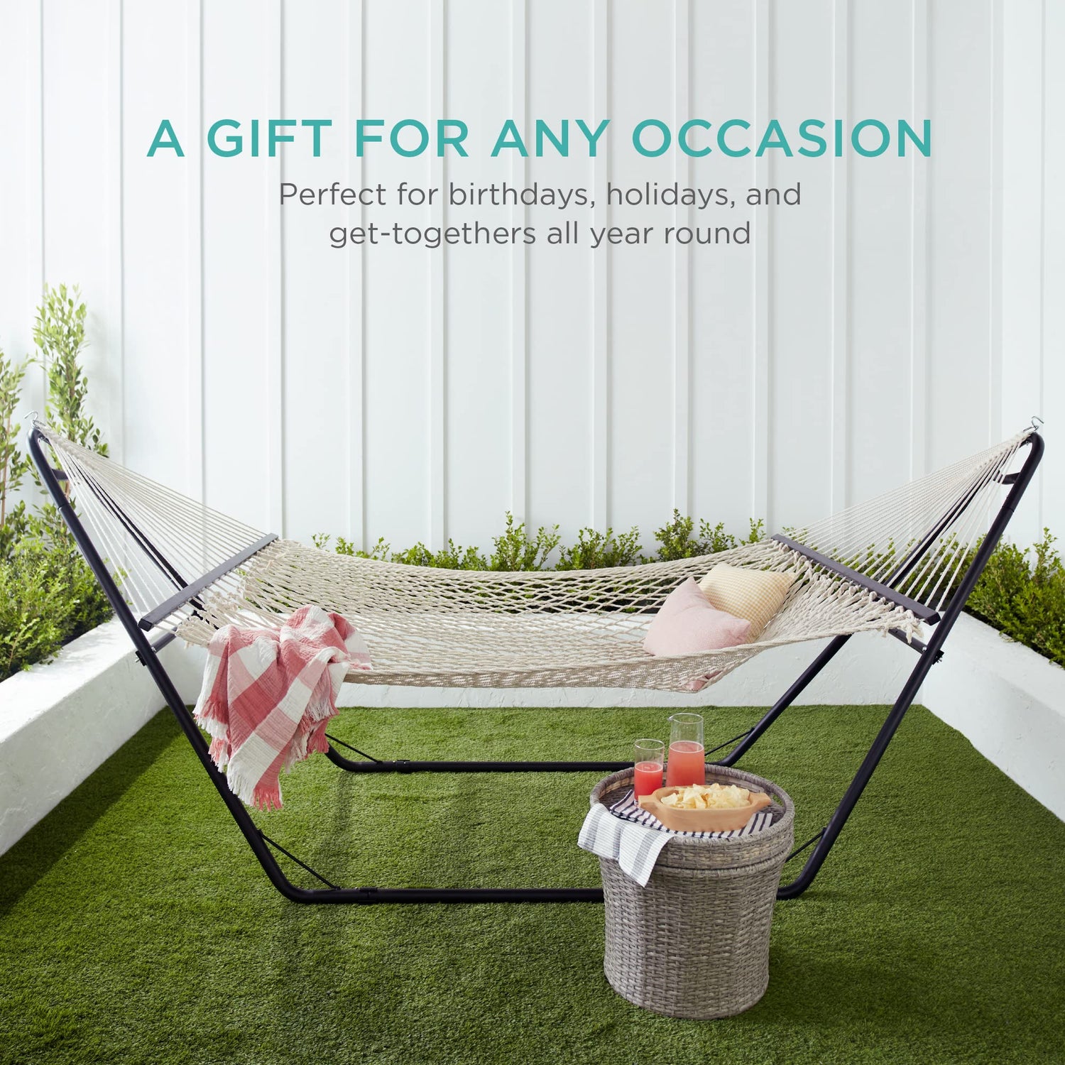 Best Choice Products 2-Person Double Hammock, Outdoor Woven Cotton Rope Hammocks for Backyard, Patio w/Spreader Bars, Carrying Case, 450lb Weight Capacity