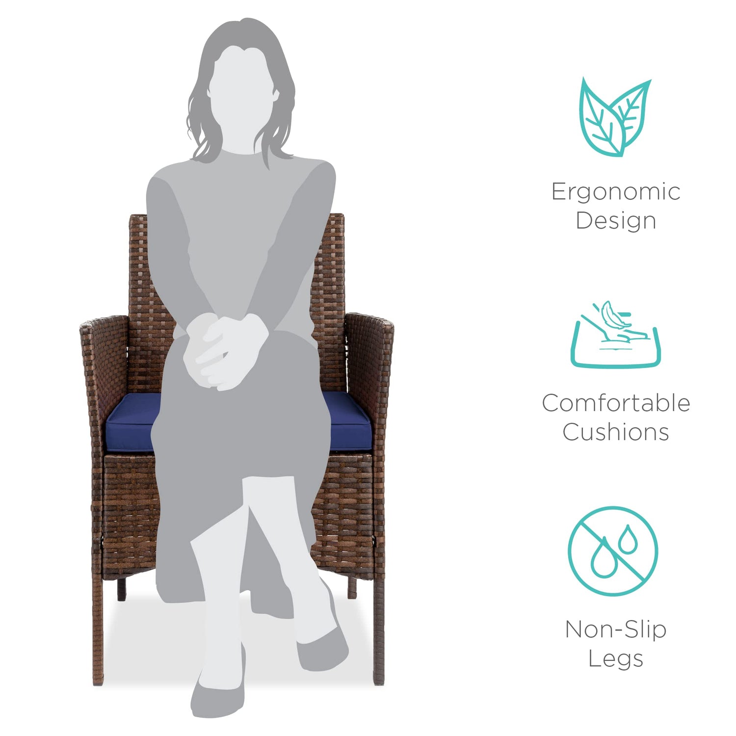 - PREMIUM MATERIALS: All-weather wicker on a durable steel frame guarantees long-lasting, high-quality seating; CHAIR DIMENSIONS: 23"(L) x 21.75"(W) x 32.25"(H); TABLE DIMENSIONS: 15.5"(L) x 15.5"(W) x 17.75"(H); Chair Weight Capacity: 250 lbs.; Table Weight Capacity: 50 lbs.