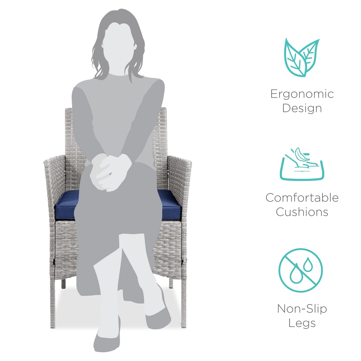 - PREMIUM MATERIALS: All-weather wicker on a durable steel frame guarantees long-lasting, high-quality seating; CHAIR DIMENSIONS: 23"(L) x 21.75"(W) x 32.25"(H); TABLE DIMENSIONS: 15.5"(L) x 15.5"(W) x 17.75"(H); Chair Weight Capacity: 250 lbs.; Table Weight Capacity: 50 lbs.