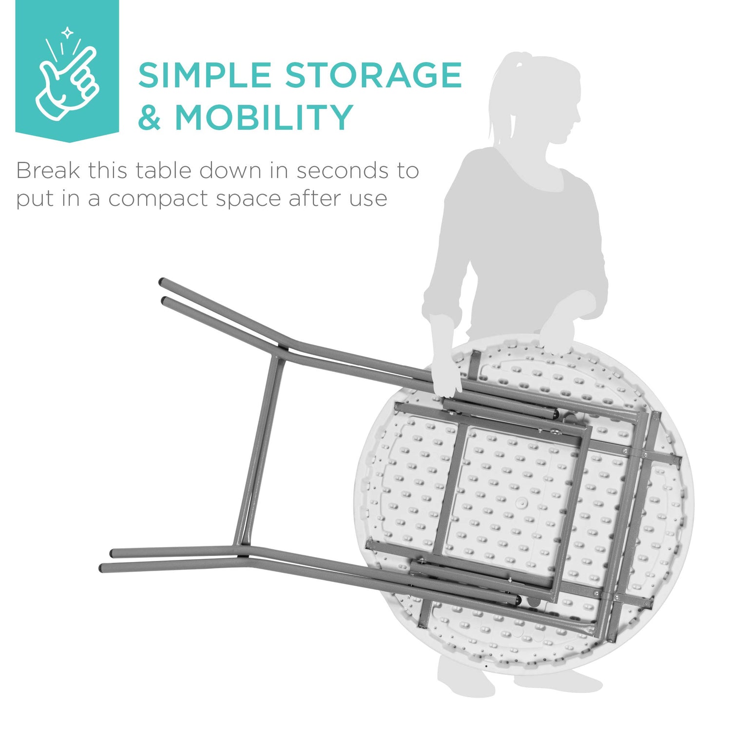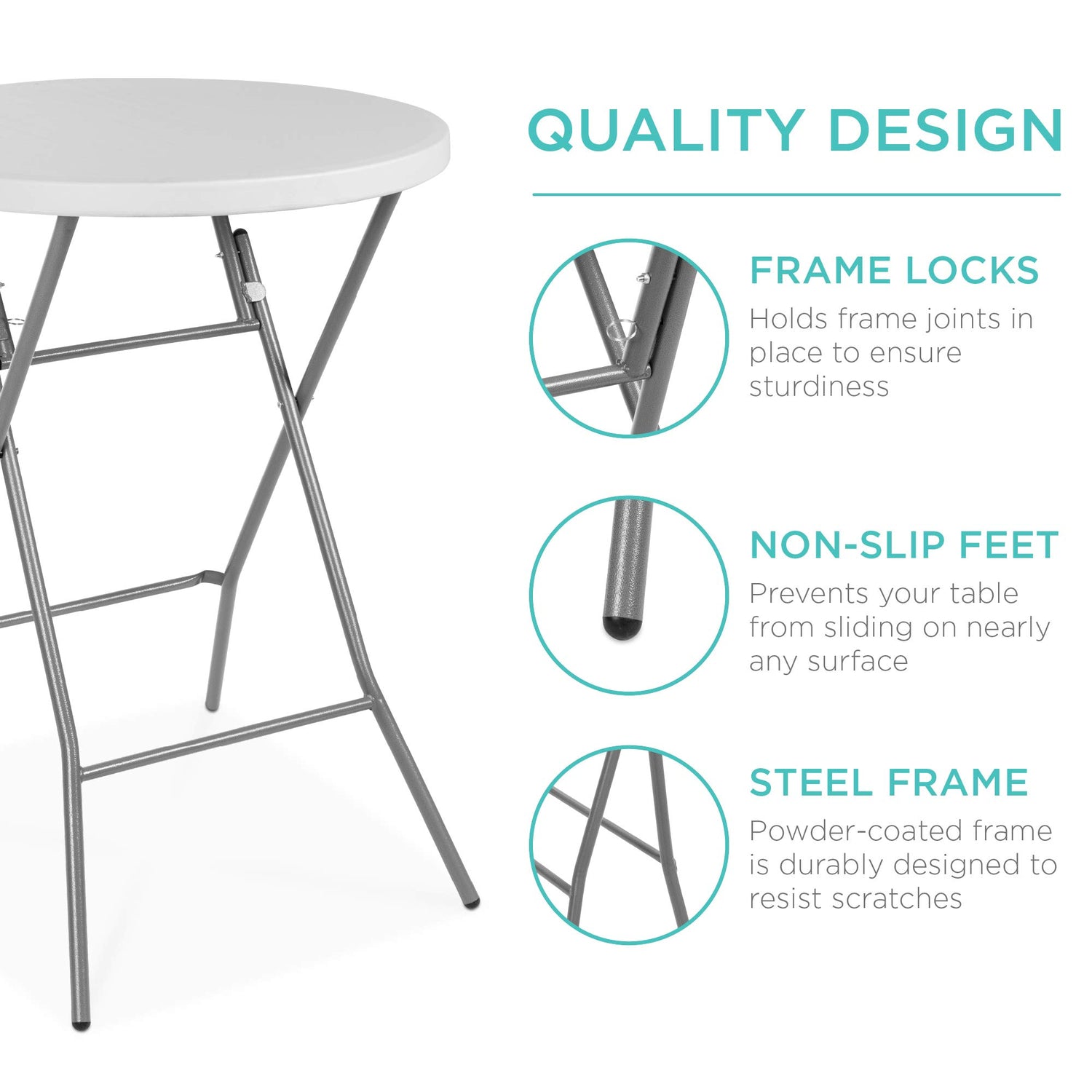 Best Choice Products 32in Bar Height Folding Table, Round Indoor Outdoor Accessory for Patio, Backyard, Dining Room, Events w/Thick Table Top, Metal Frame, Locking Legs, 330lb Weight Capacity - White