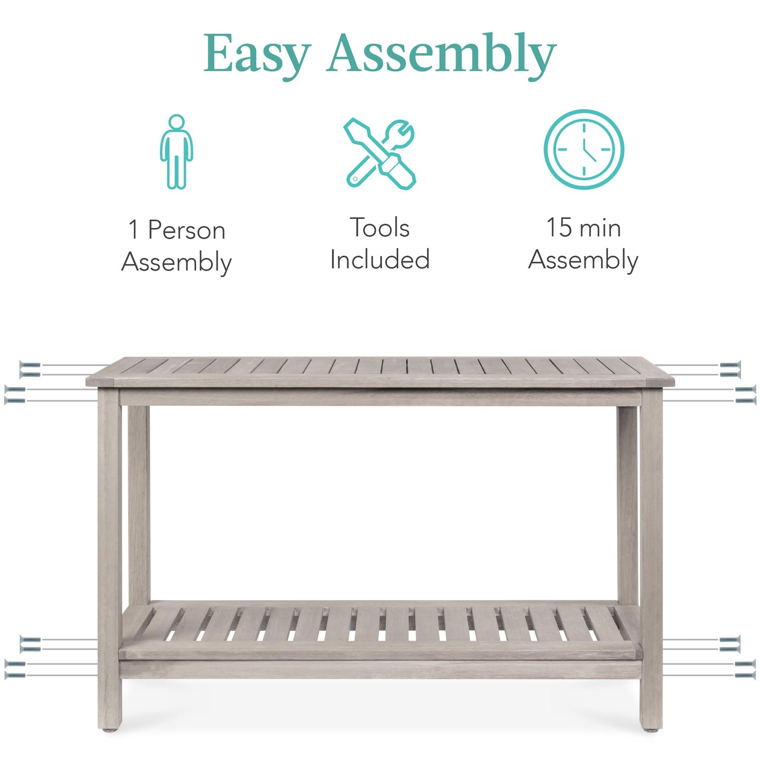 - VERSATILE STORAGE: Slatted shelves provide a sturdy, easy-cleaning space to store your favorite flowers, succulents, and potting accessories; OVERALL DIMENSIONS: 48"(L) x 16"(W) x 30"(H); Weight Capacity: 220 lbs.