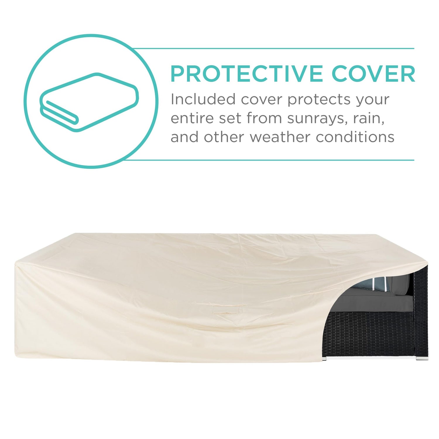 Best Choice Products 7-Piece Modular Outdoor Sectional Wicker Patio Conversation Set w/ 2 Pillows, Coffee Table, Cover Included - Black/Gray