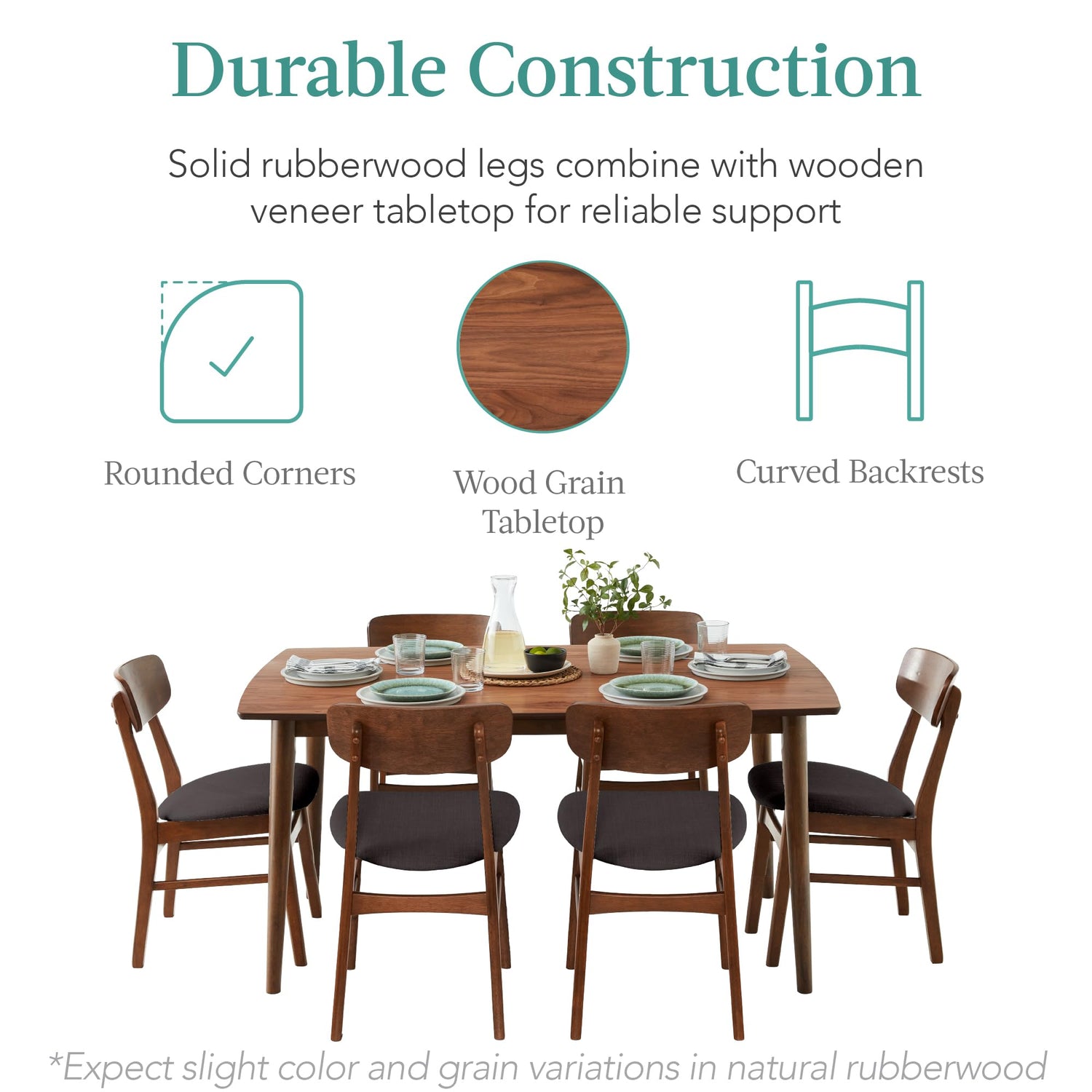 Best Choice Products 7-Piece Wooden Dining Room Table Set, Mid-Century Modern, Kitchen Table w/ 6 Chairs, Upholstered Cushions, Curved Backrests, Rounded Table Corners - Walnut/Charcoal