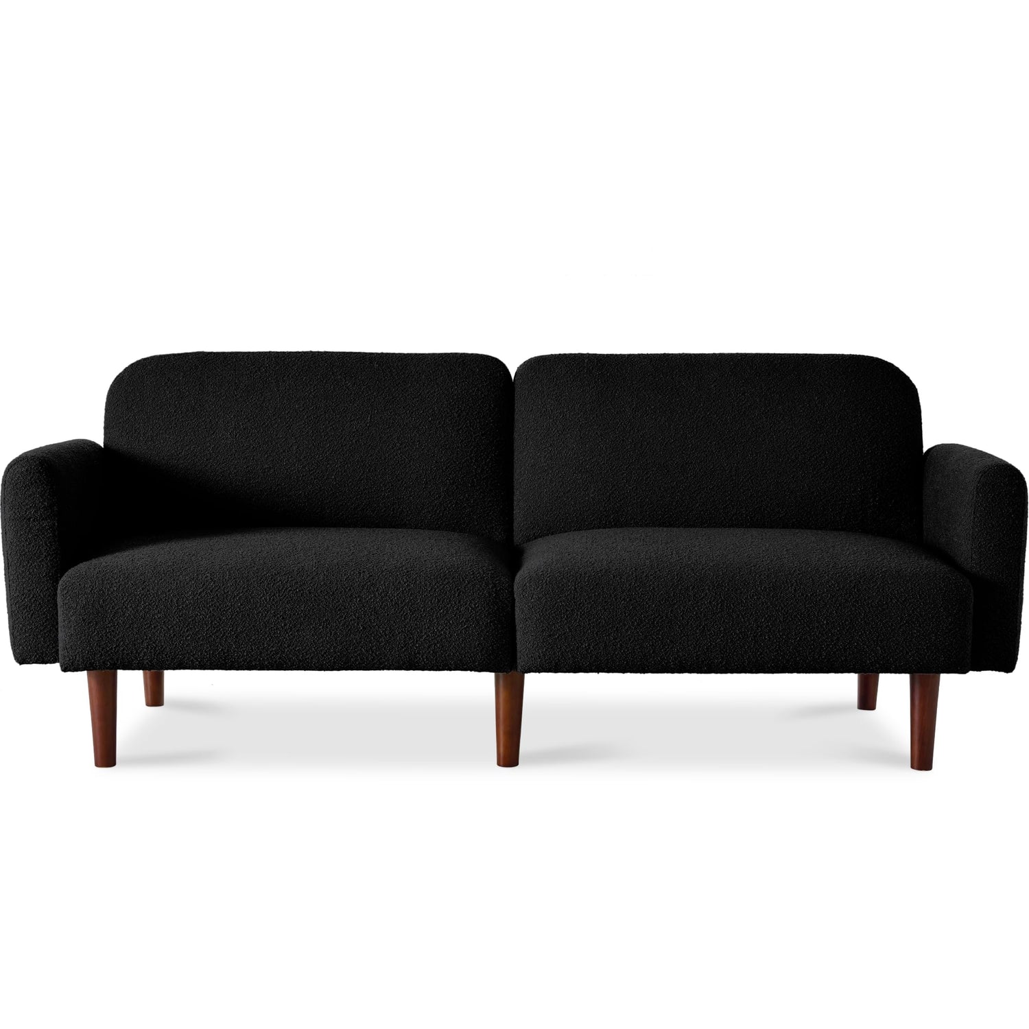 Best Choice Products 77" Mid Century Modern Boucle Loveseat Sofa, Couch, Convertible Sofa Sleeper Bed w/Real Wood, Removable Armrest - Midnight Black