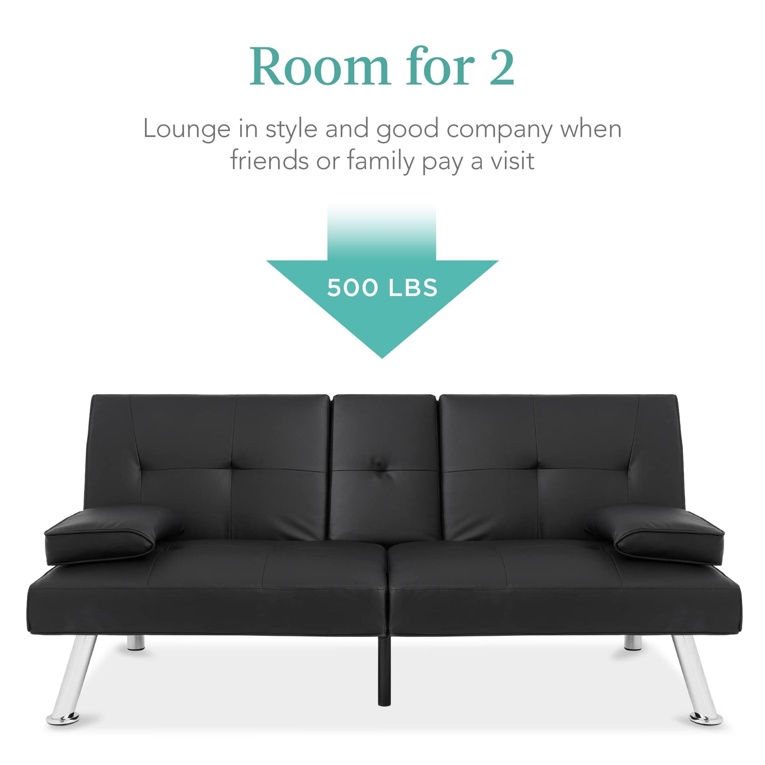 - ROOM FOR 2: This stylish futon sofa has a 500-pound weight limit that lets you lounge in good company while utilizing a fold-down armrest with convenient cupholders in the middle