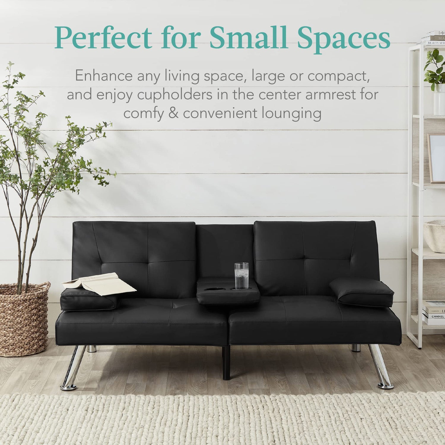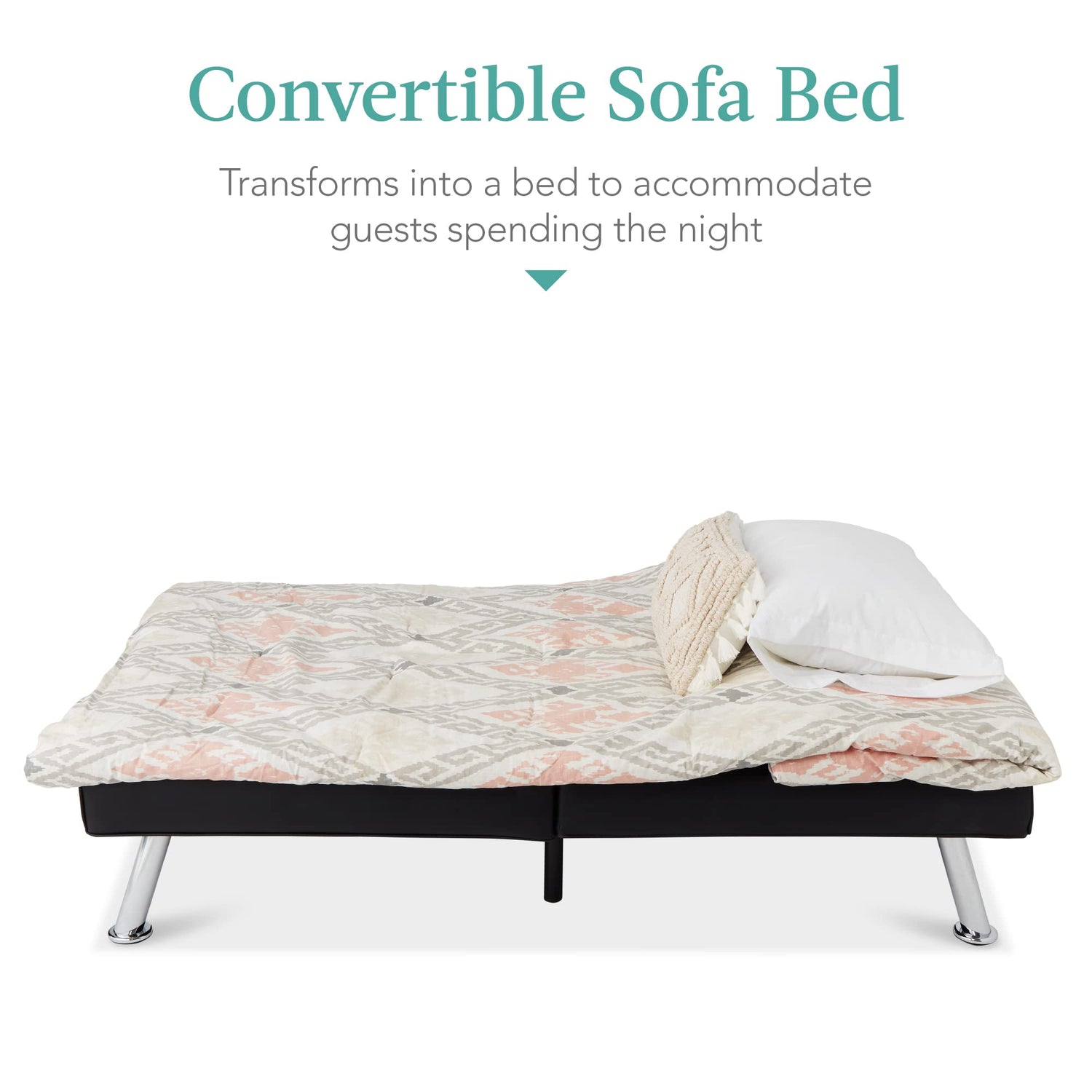 Best Choice Products Faux Leather Upholstered Modern Convertible Futon, Adjustable Folding Sofa Bed, Guest Bed w/Removable Armrests - Black