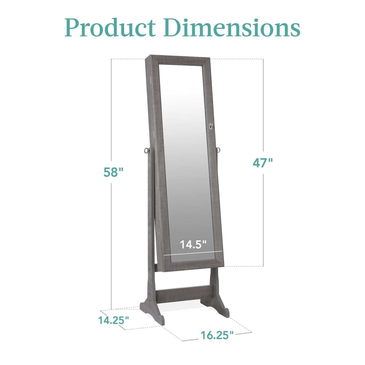 Best Choice Products Freestanding Jewelry Armoire Cabinet, Full Length Standing Mirror, Lockable Makeup Storage Organizer, w/Velvet Lining, 3 Angles, Lock, Accessory Pouch, 5 Shelves - Gray Oak